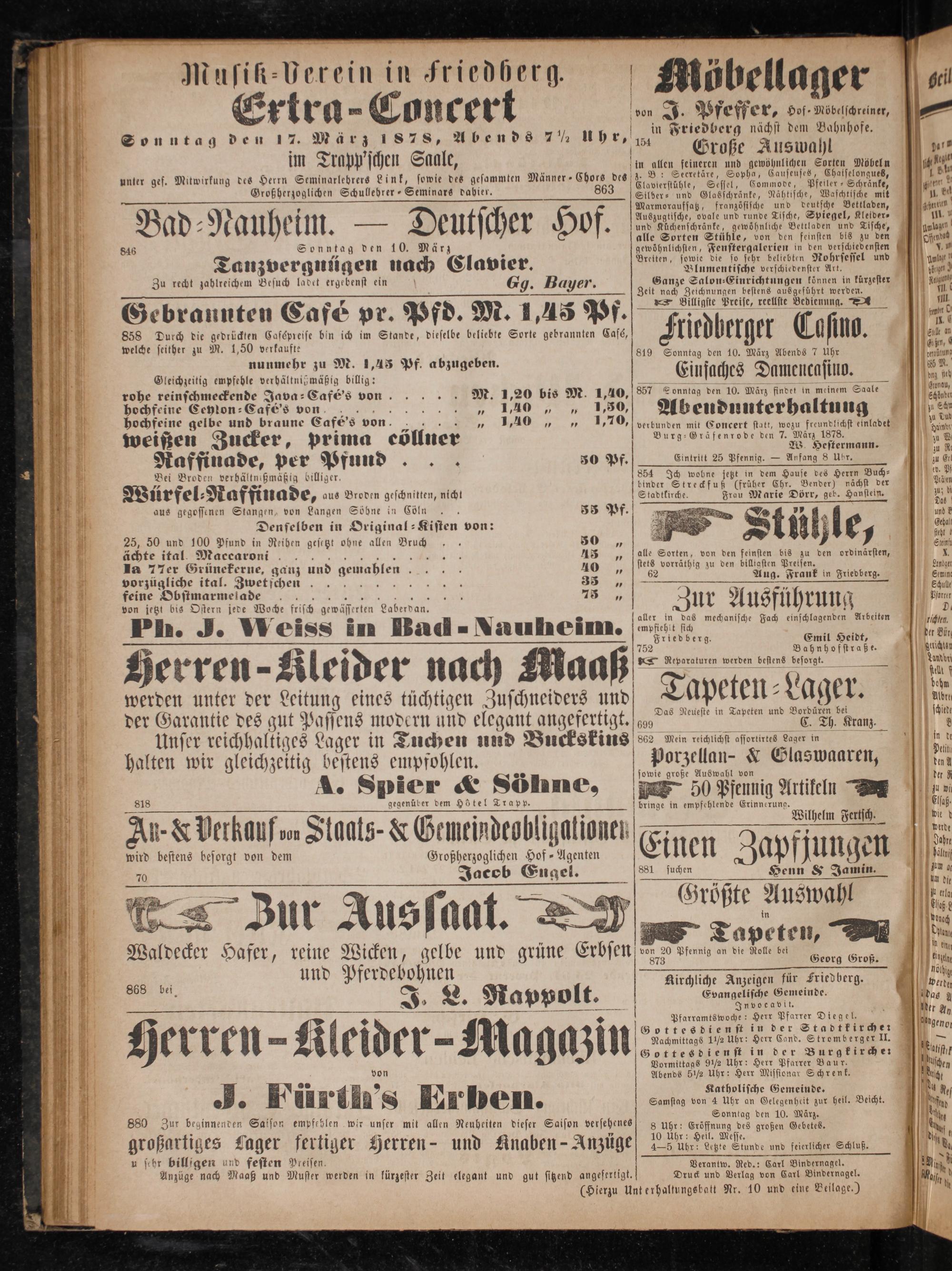 Sonntag den 17. März 1878, Abends 7% ue, im Trapp'schen Saale,