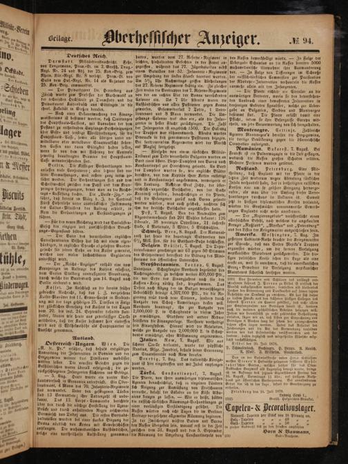 — Der„Reichs- Anzeiger“ enthält eine vom Kronprinzen im Auftrage des Kaisers erlassene, vom Grafen Stolberg contrasignirte Verordnung, durch welche der Bundes rath zum 14. August nach Berlin einberufen wird.