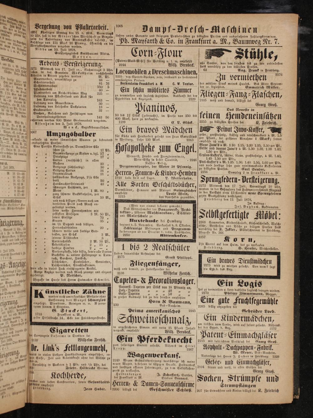Außerdem werden 800 Meter Grabenarbeit vergeben. Assenheim den 3. Juli 1878. Wenck, Bezirksbauaufseher.