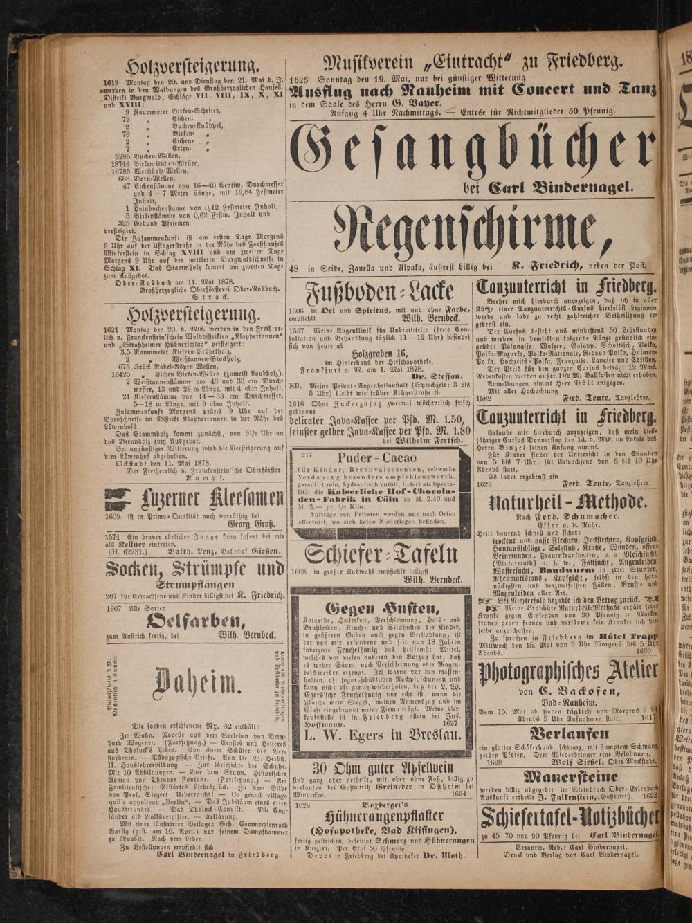 Verantw. Red.: Carl Bindernagel. Druck und Verlag von Carl Bindernagel.