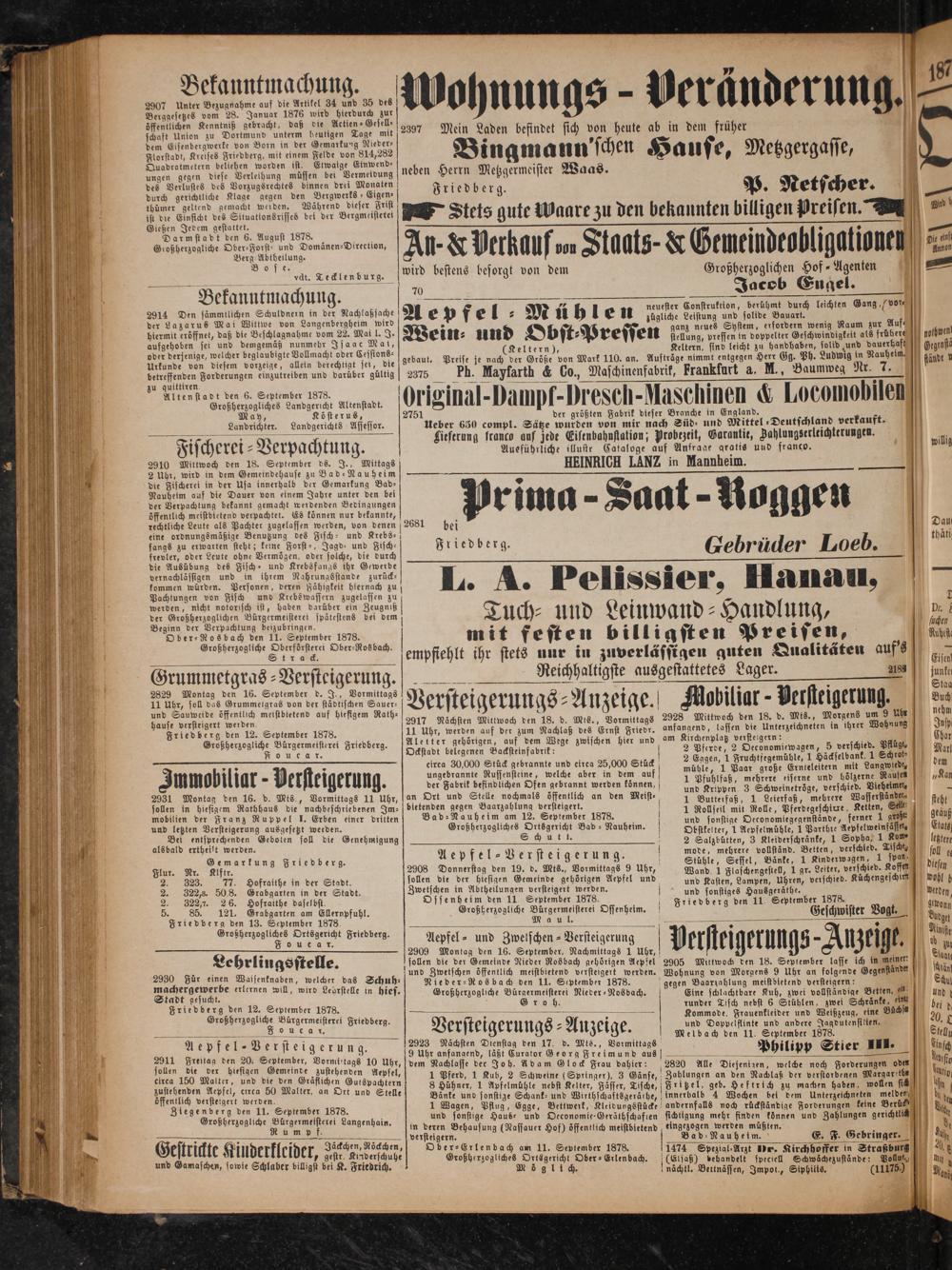 Friedberg den 13. September 1878 Großherzogliches Ortsgericht Friedberg. Fouc ar.