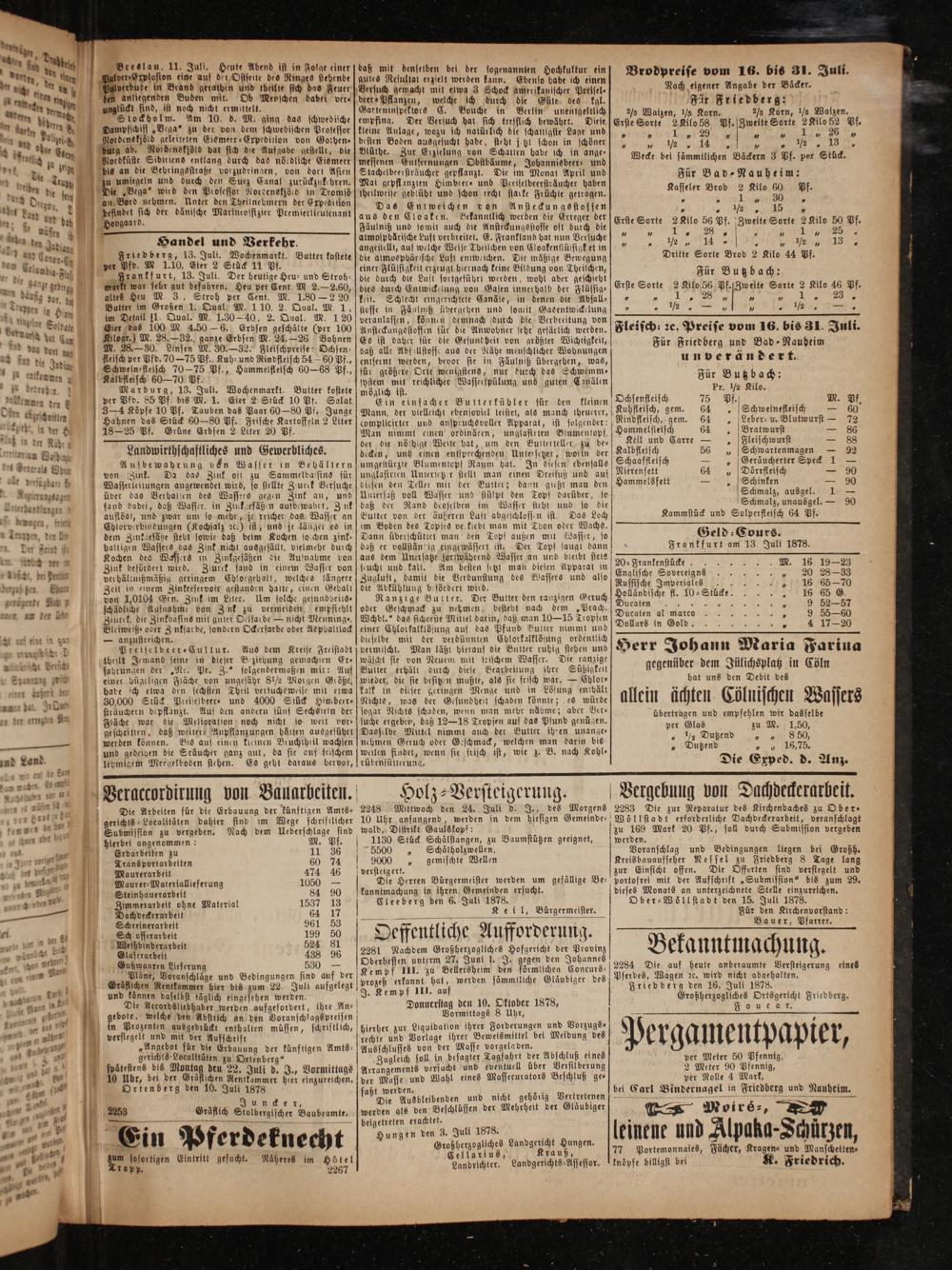 Handel und Verkehr. Friedberg, 13. Juli. Wochenmarkt. Butter kostete