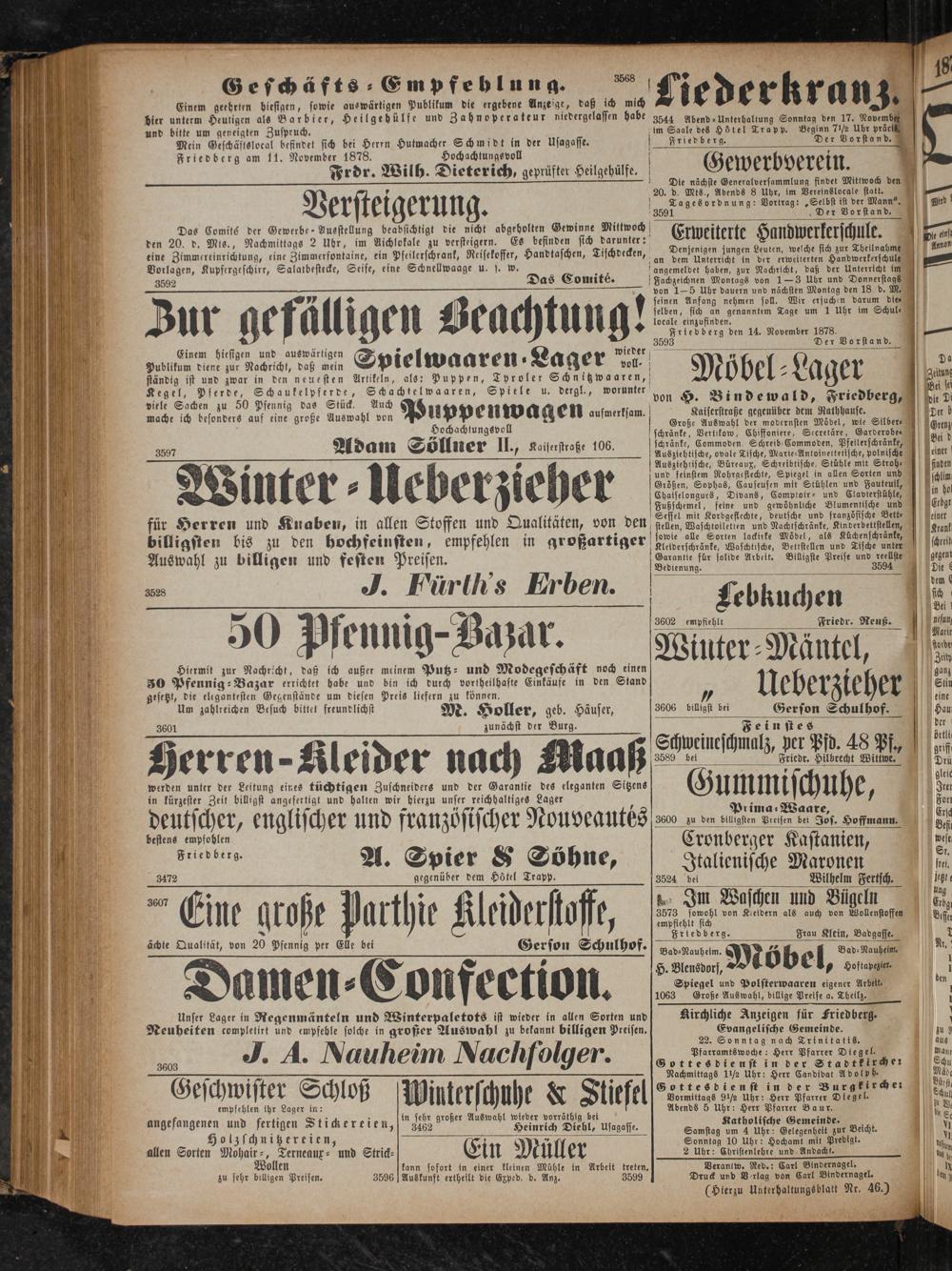 Druck und Verlag von Carl Bindernagel. (Hlerzu Unterhaltungsblatt Nr. 46.)