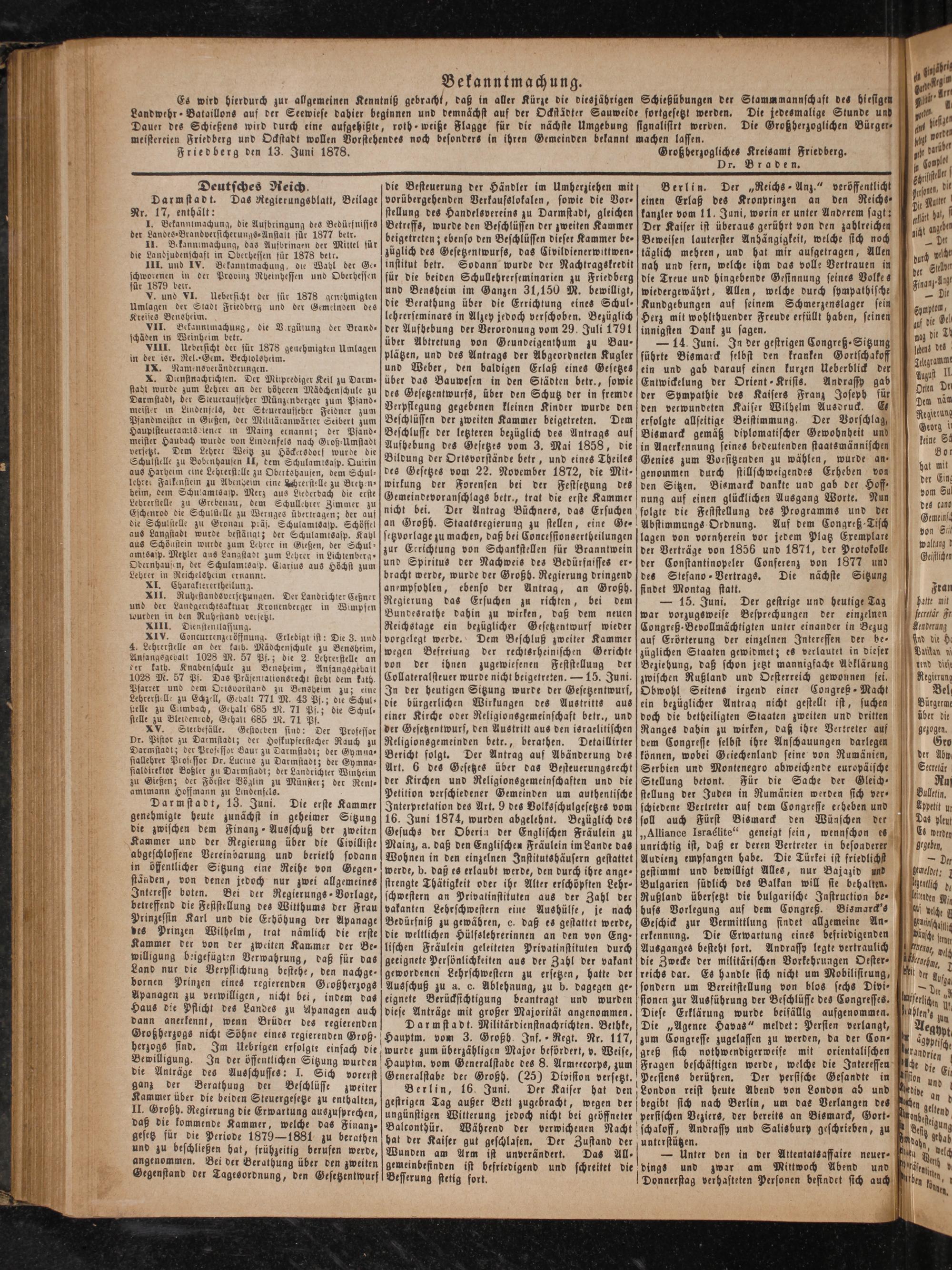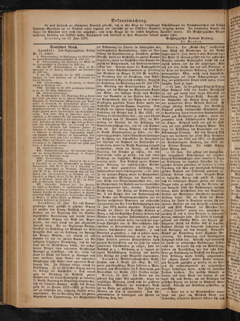 Friedberg den 13. Juni 1878.