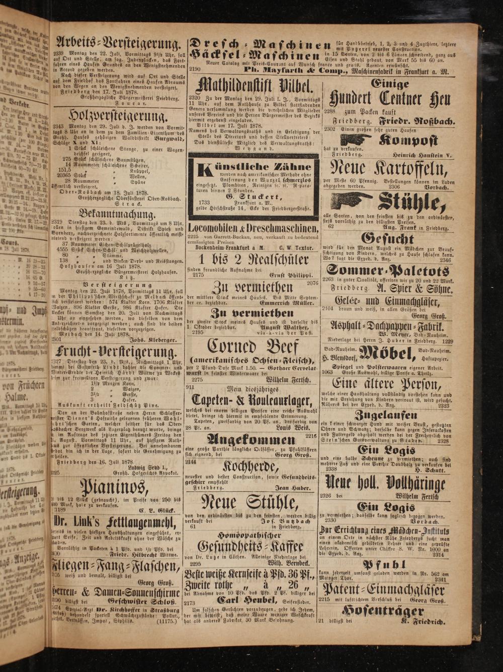 Vilbel am 17. Juli 1878. 5 Namens des Verwaltungsraths und in Erledigung der Stelle des Dirtetors und dessen Stellvertreters: Das dienstälteste Mitglied des Verwaltungsraths: Weygand.