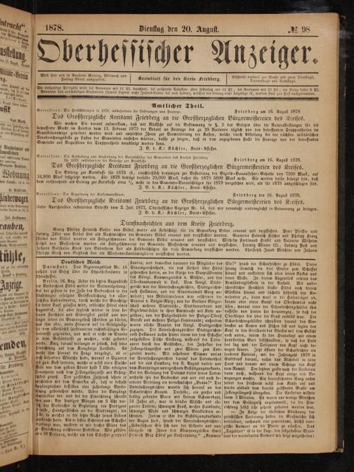 Friedberg den 16. August 1878.