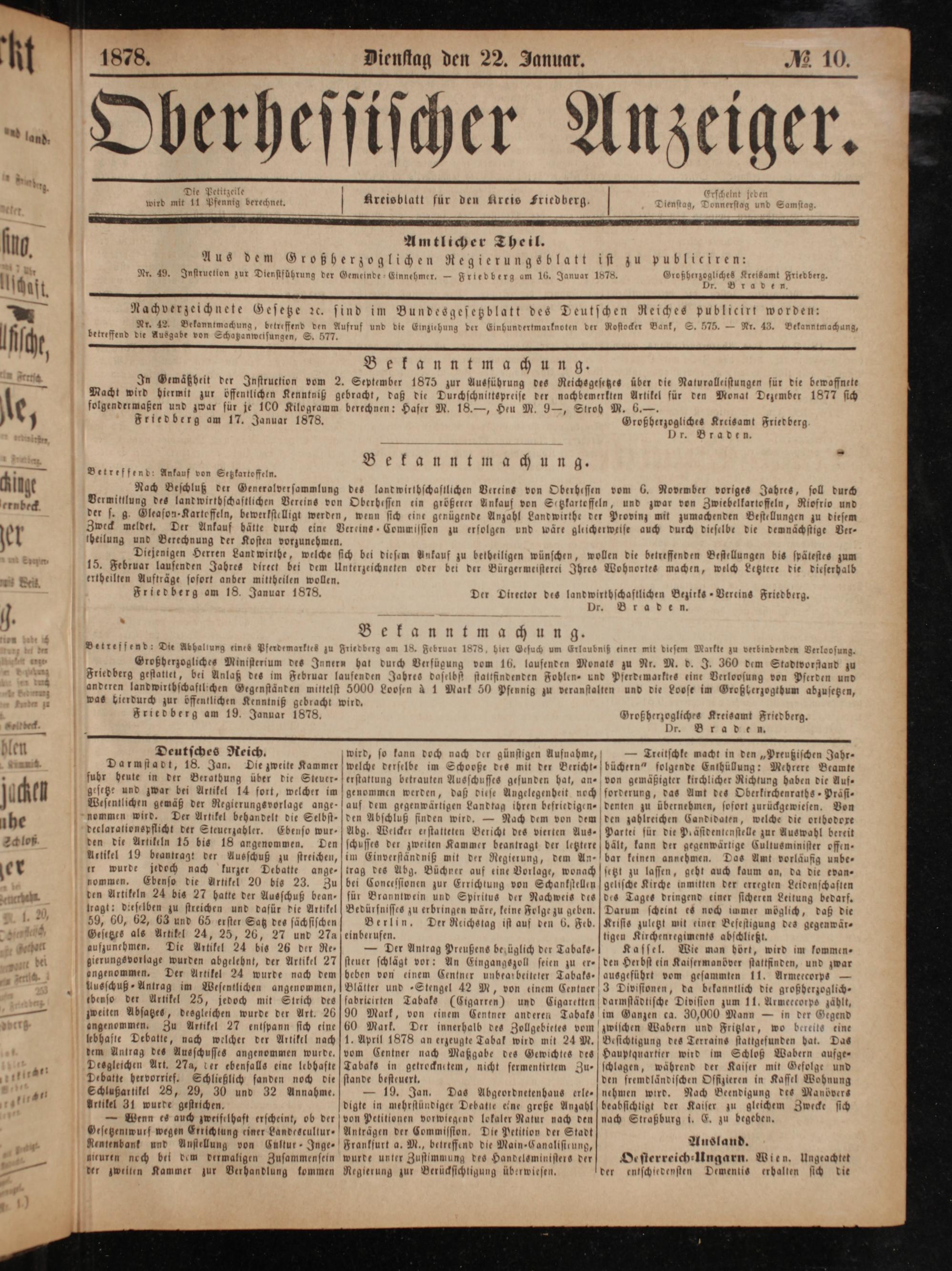 Großherzogliches Kreisamt Friedberg. Dr. Braden.