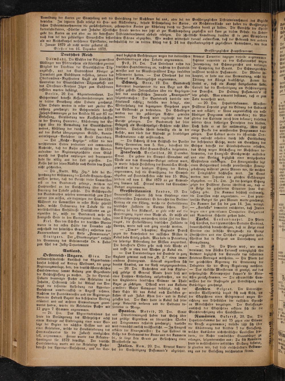 1. Januar 1879 ab nicht weiter gestattet ist. Gießen den 16. Dezember 1878.