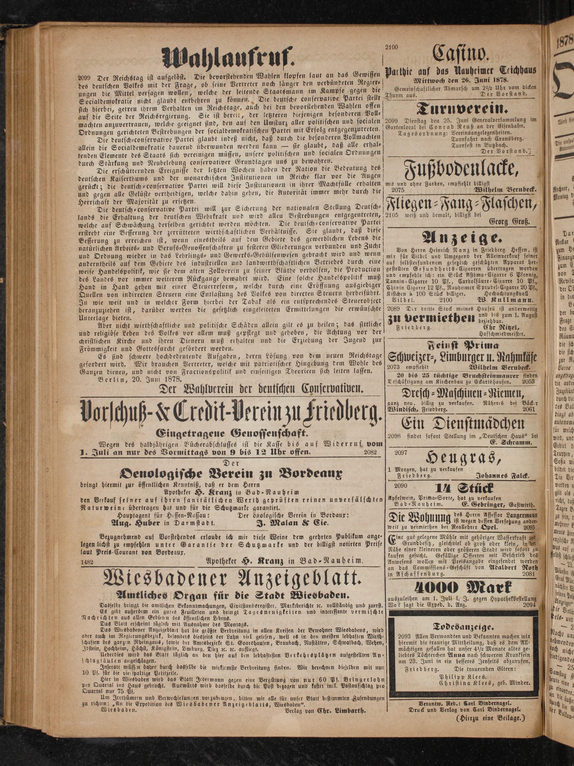 Verantw. Red.: Carl Bindernagel. Druck und Verlag von Carl Bindernagel.
