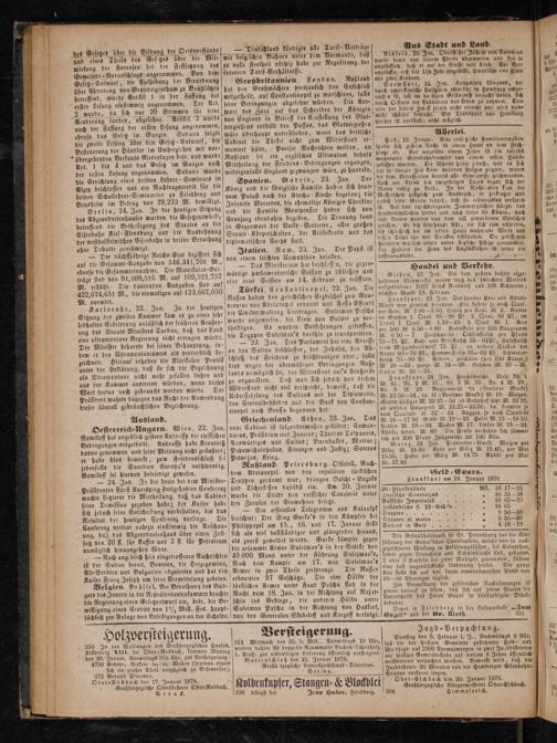 Oesterreich⸗Ungarn. Wien, 22. Jan. Nowikoff hat angeblich gestern Andrassp die russischen Bedingungen mitgetheilt. Andrassy babe Kenntniß davon genommen und seine Meinung nicht geäußert; er habe blos bemerkt, zum Friedensschluß sei jedenfalls die Sanction Europa's nothwendig. Nowikoff sei hiervon befriedigt gewesen.