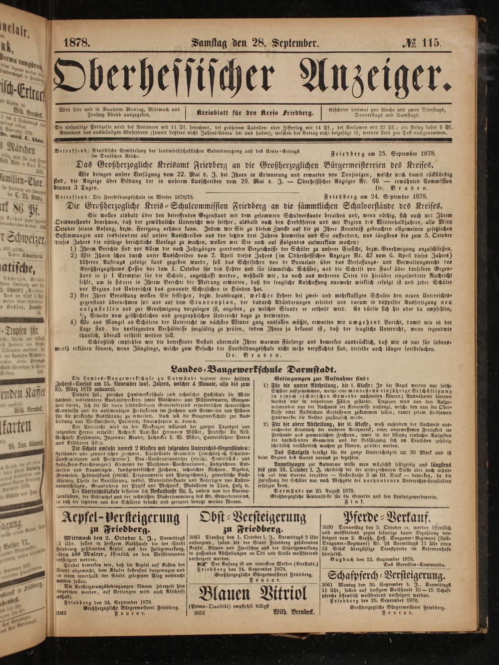 Friedberg den 24. September 1878. Großherzogliche Bürgermeisterel Friedberg. Fo ue ar.