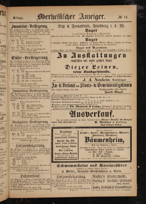 Friedberg den 15. Januar 1879. Großberzogliches Ortsgericht Friedberg. .