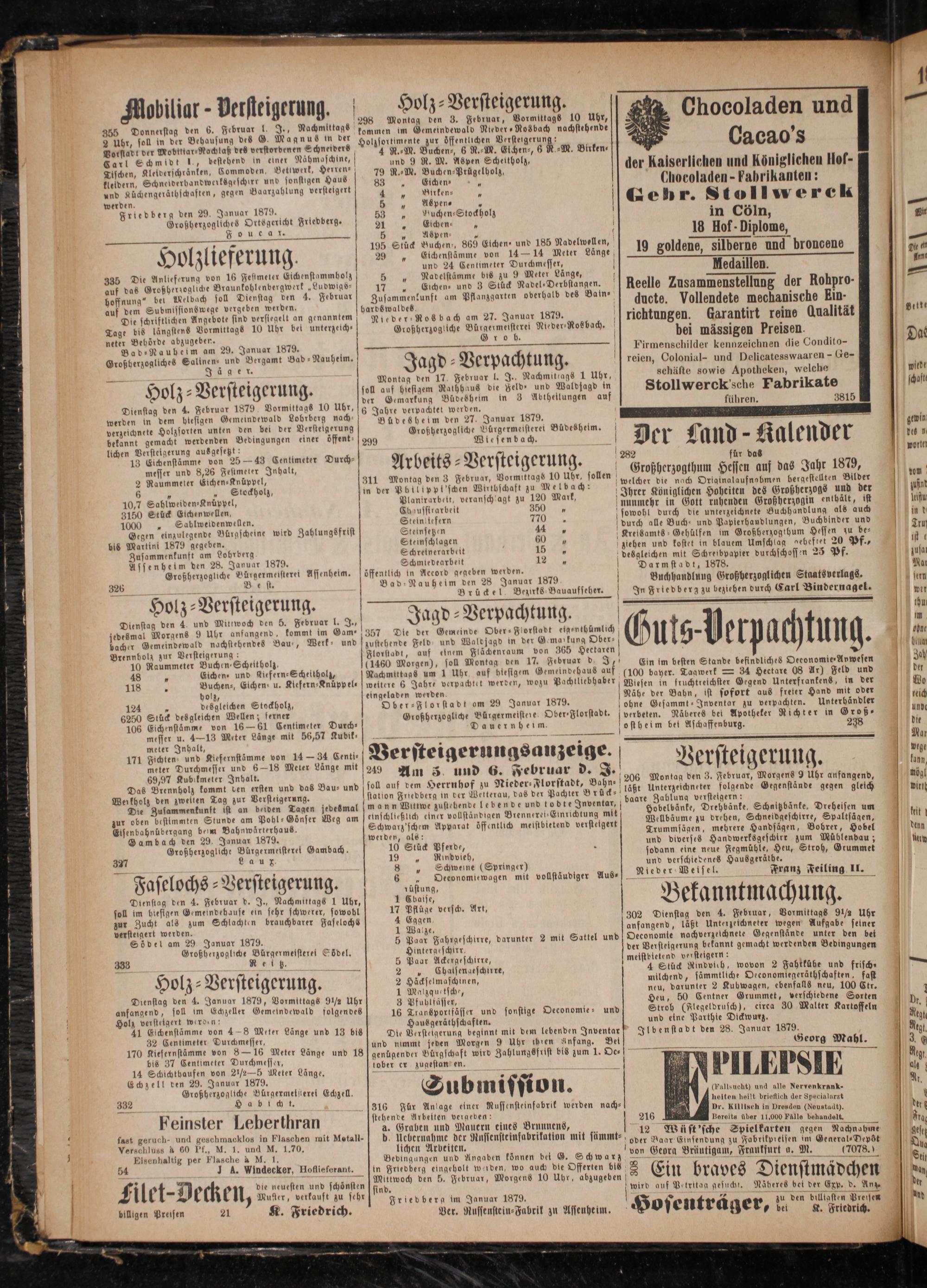 öffentlich in Accord gegeben werden. g Bad Nauheim den 28 Januar 1879 Brücke l. Bezirks Bauaufseher.