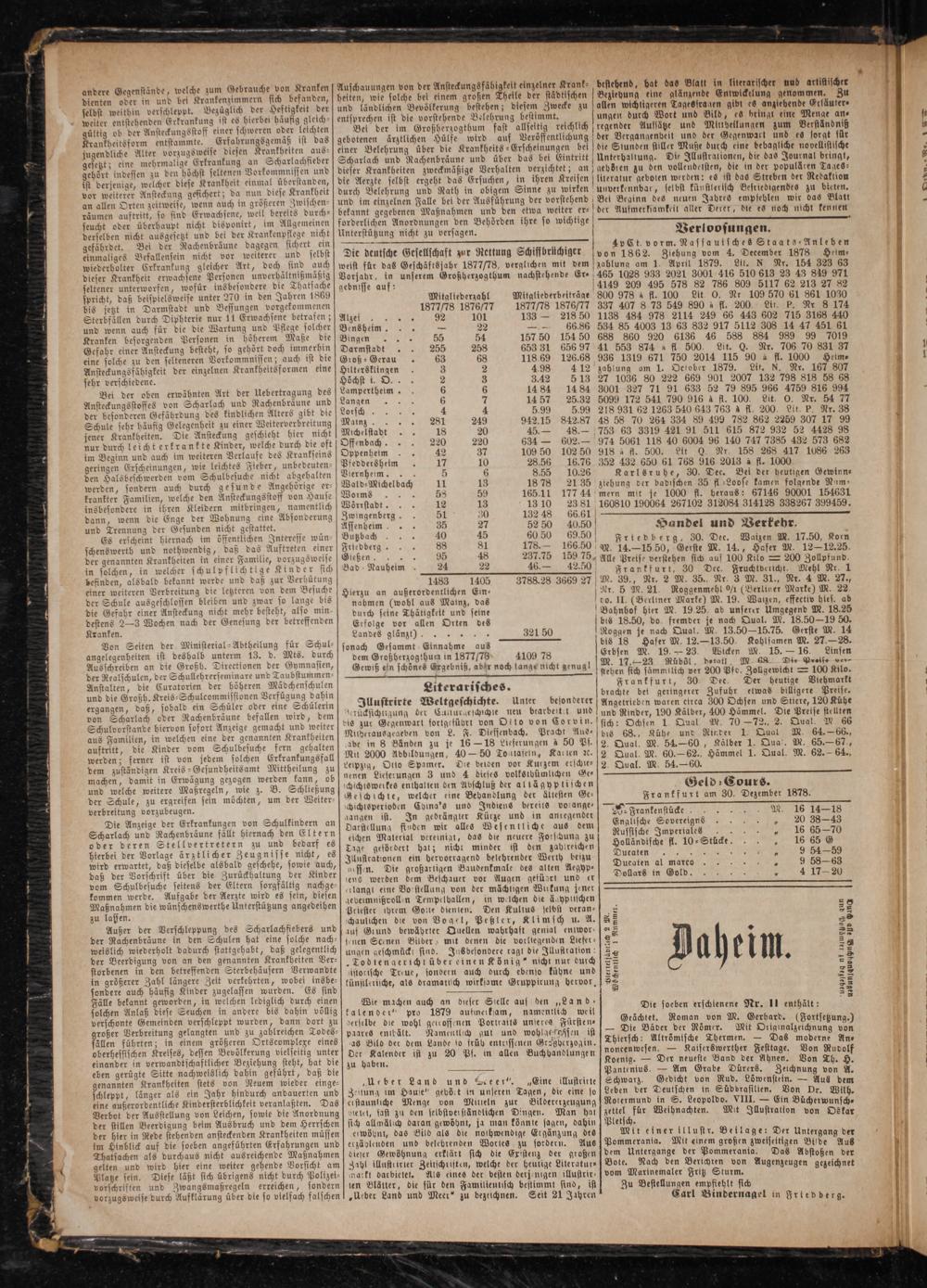 Es erscheint hiernach im öffentlichen Interesse wün schenswerth und nothwendig, daß das Auftreten einer der genannten Krankheiten in einer Familie, vorzugsweise in solchen, in welcher schulpflichtige Kinder sich befinden, alsbald bekannt werde und daß zur Verhütung einer weiteren Verbreitung die letzteren von dem Besuche der Schule ausgeschlossen bleiben und zwar so lange bis die Gefahr einer Ansteckung nicht mehr besteht, also min⸗ destens 2—3 Wochen nach der Genesung der betreffenden Kranken.