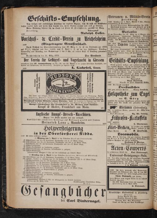 werden. Reichelsheim den 31. März 1879. Der Vorstand. Der Verein für Geflügel- und Fogelzucht in Giessen