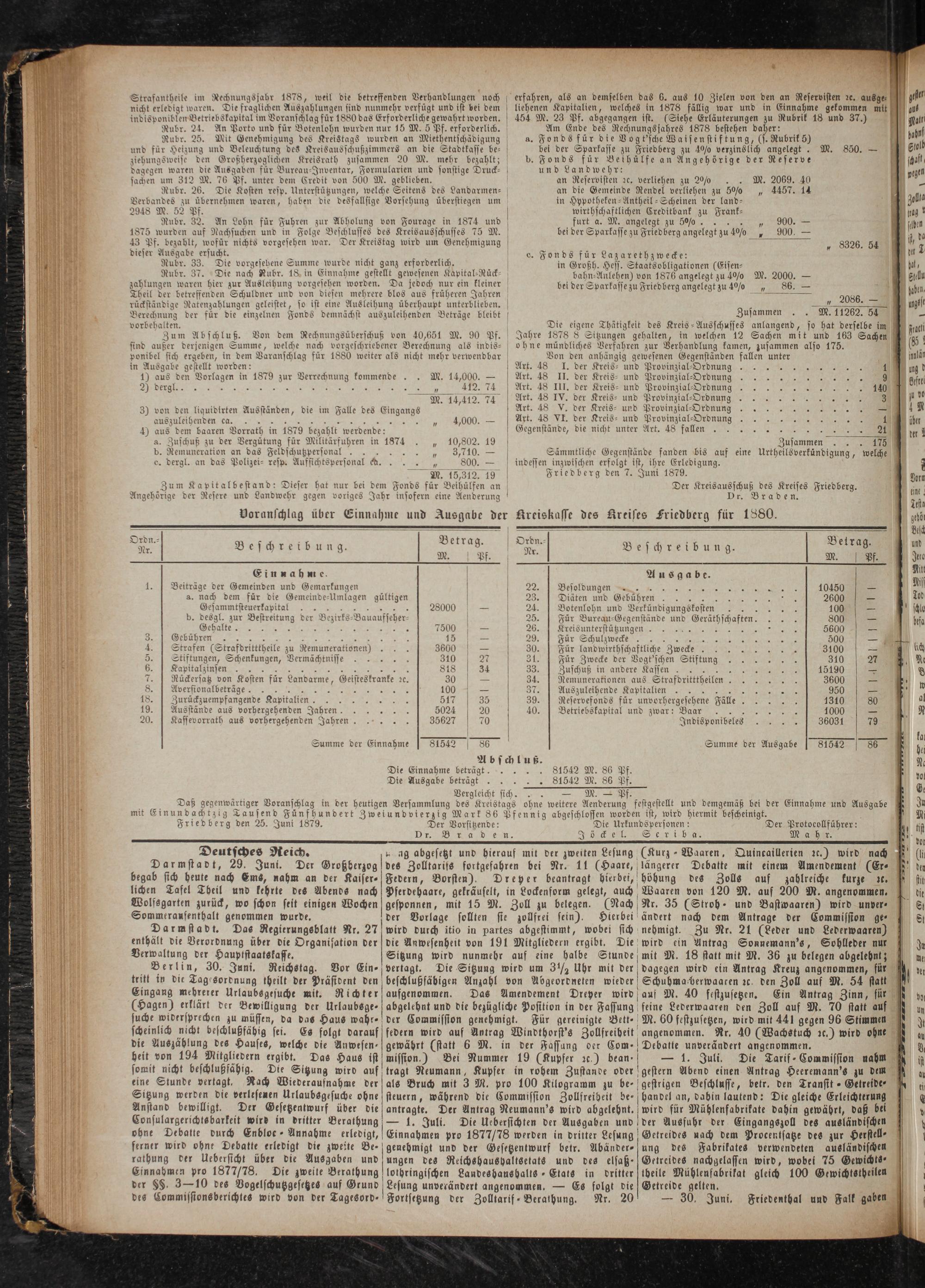 Dr. Braden. R des Kreises Friedberg für 1880.