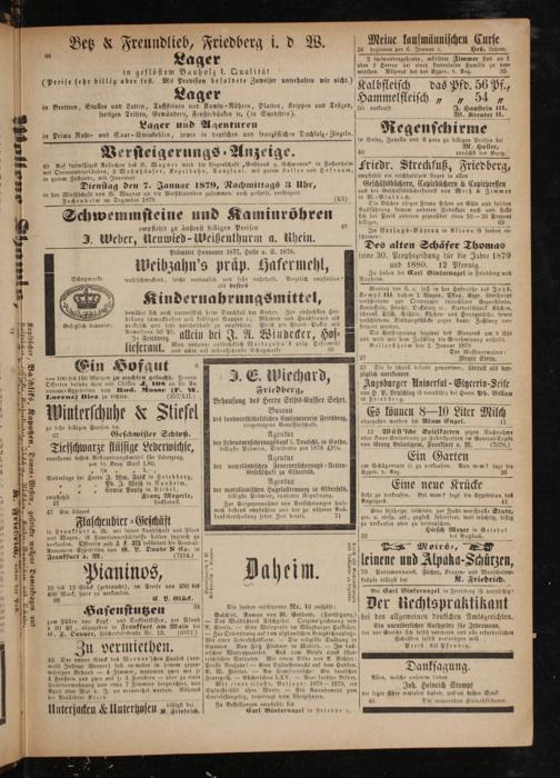 Prümiirt Hannover 1877, Halle a. S 2 I* 2 3* 1 2 Weibzahn's präp. Hafermehl und 1880. 12 Pfennig 22 0* 2 10 Carl Bindernagel in Friedberg und Schutzmarke wohlschmeckend, leicht verdaulich und sehr nahrhaft. Aerztlich empfohlen übe 7 als bestes