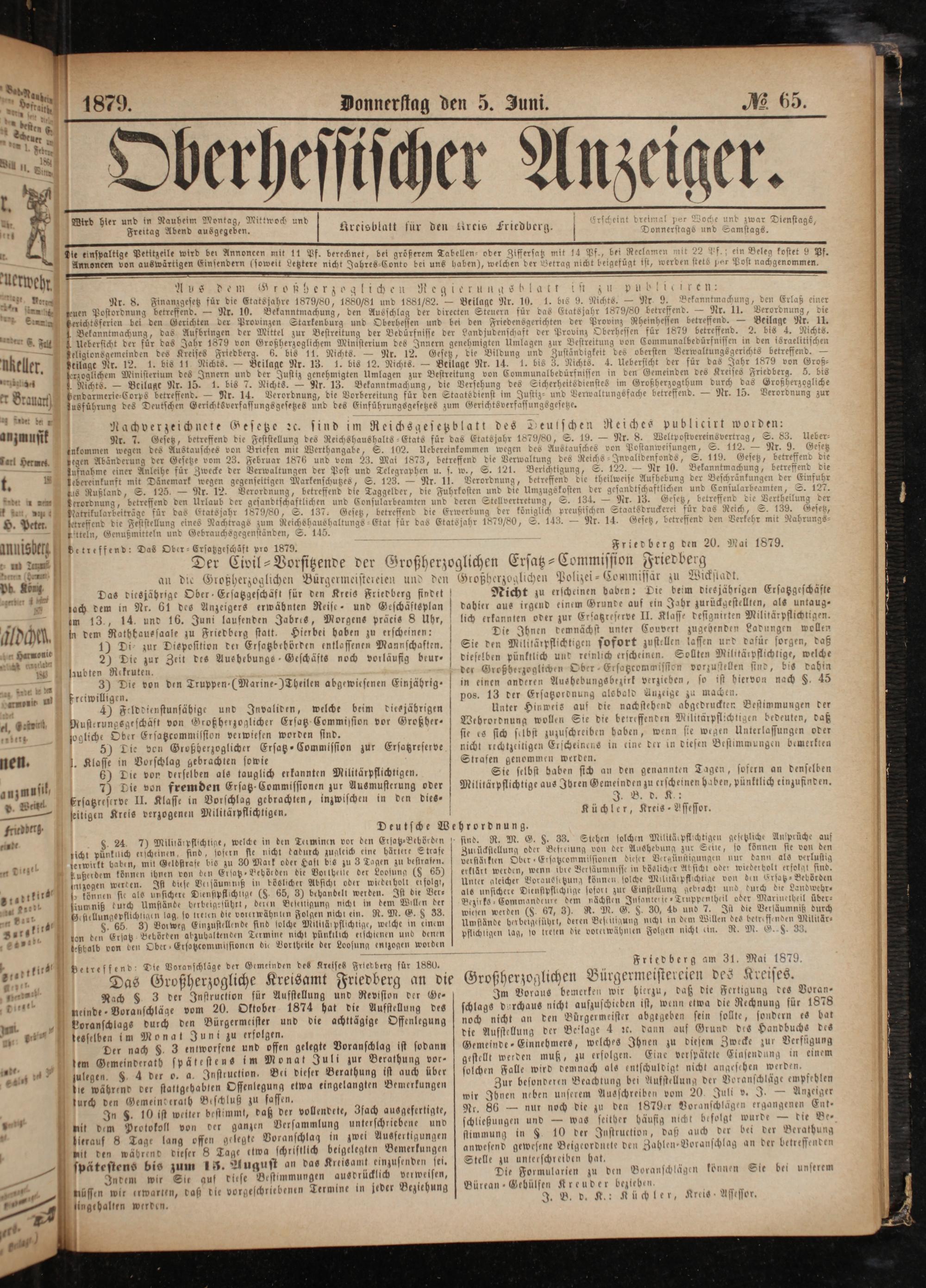 Friedberg am 31. Mai 1879 Großherzoglichen Bürgermeistereien des Kreises.