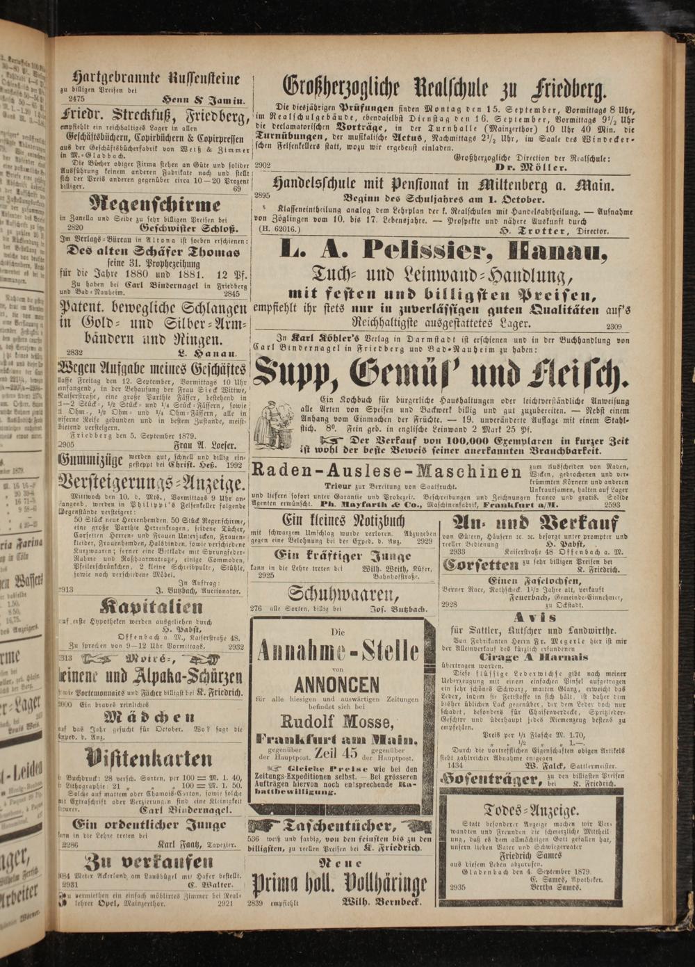 In Karl Köhler's Verlag in Darmstadt ist erschienen und in der Buchhandlung von Carl Bindernagel in Friedberg und Bad-Nauheim zu haben: