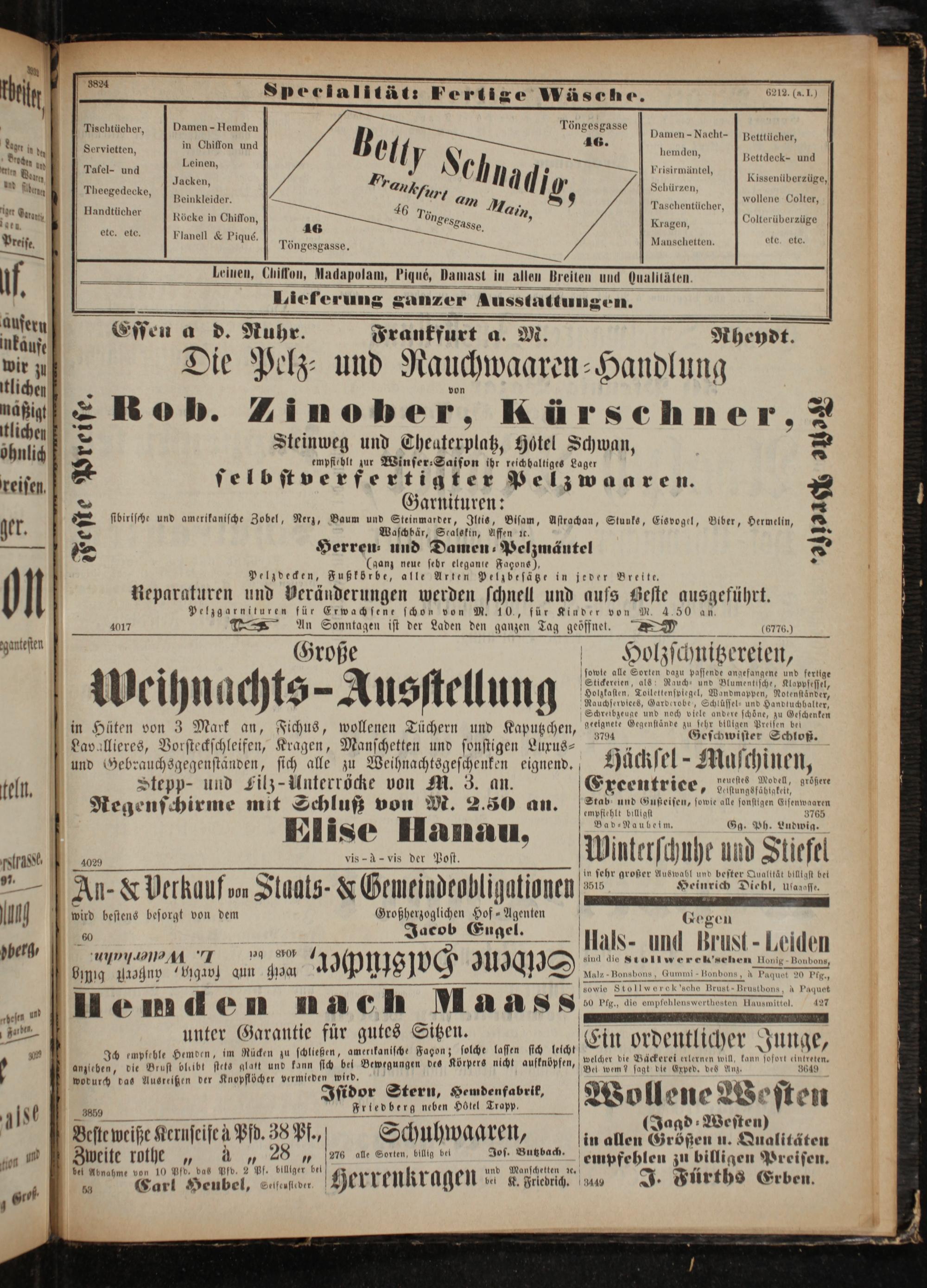 und Gebrauchsgegenständen, sich alle zu Weihnachtsgeschenken eignend. Hücksel-Muschinen,