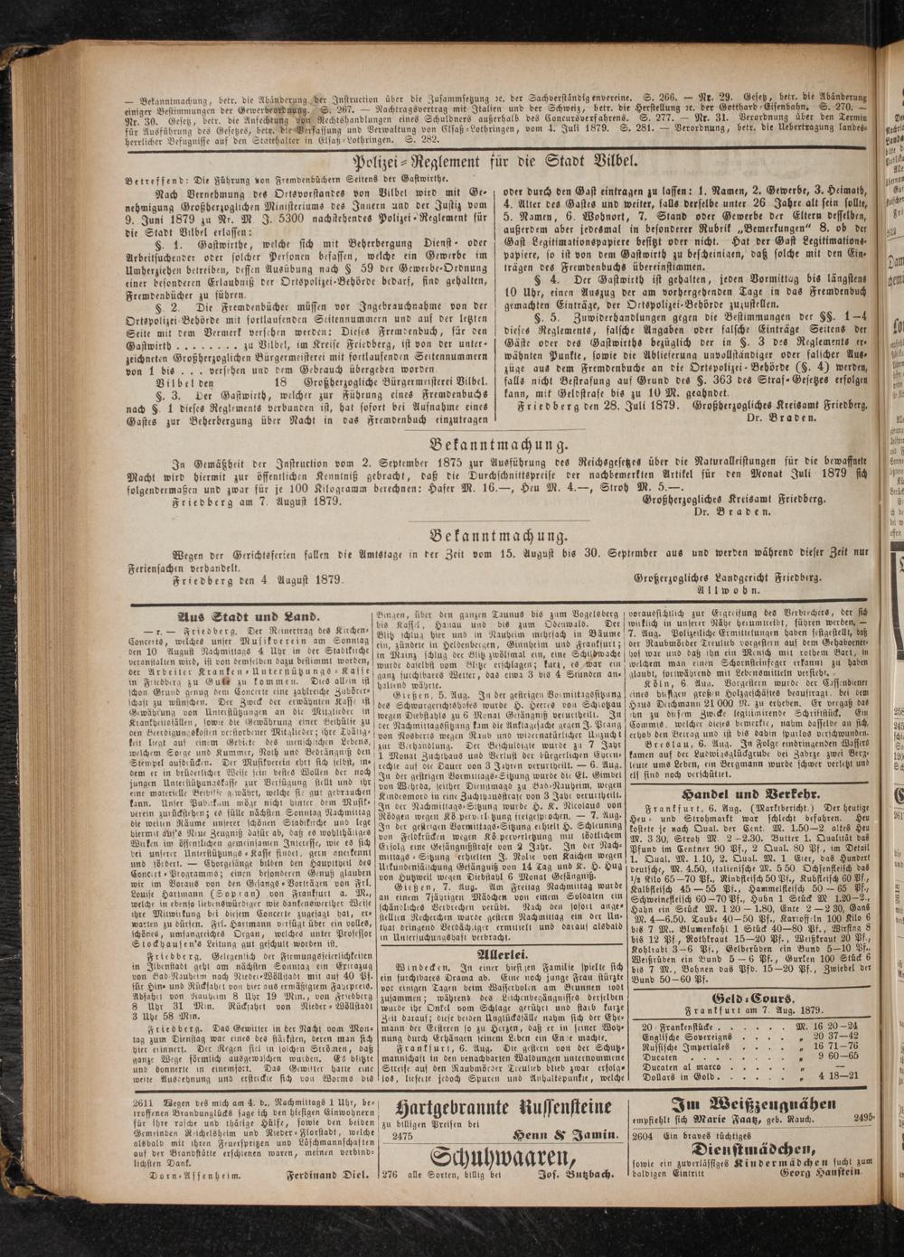 Friedberg den 28. Juli 1879. Großherzogliches Kreisamt Friedberg. Dr. Braden.