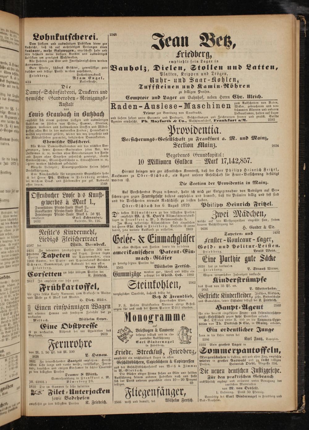 Vorräthig bei Carl Bindernagel in Friedberg und