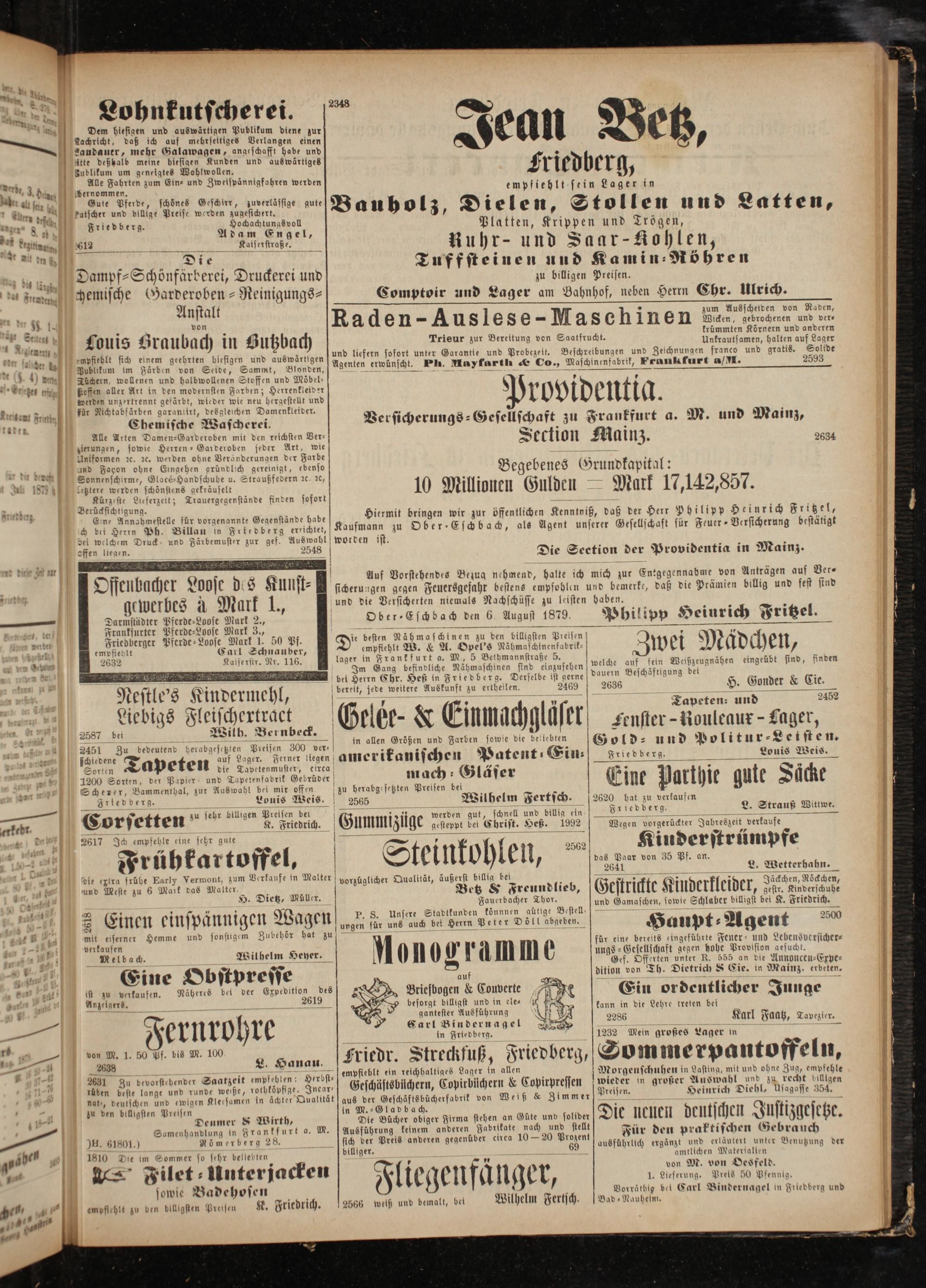 kutscher und billige Preise werden zugesichert. Friedberg. Hochachtungsvoll Adam Engel, 612 Kaiserstraße.