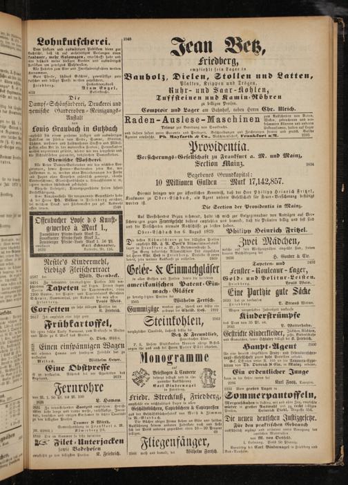 Eine Annahmestelle für vorgenannte Gegenstände habe ch bei Herrn Ph. Billau in Frtedberg errichtet, dei welchem Druck- und Färbemuster zur gef. Auswahl offen liegen. 254