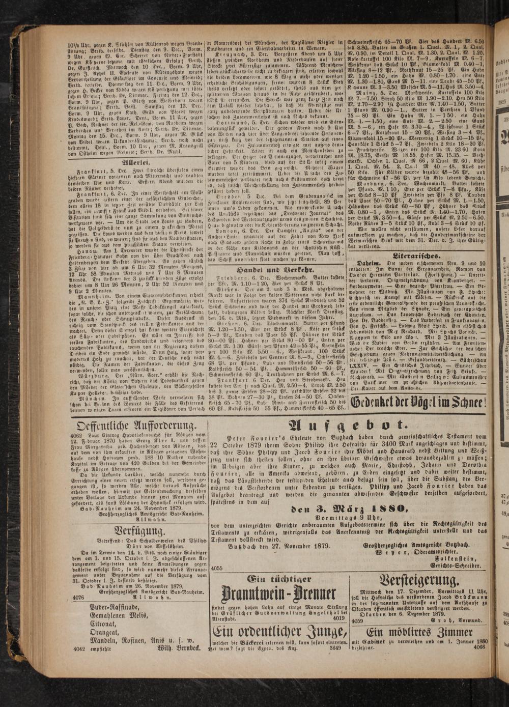 in der sogenannten Untergasse auf dem Rathhause zu Okarben öffentlich meistbietend versteigert werden. Okarben den 6. Dezember 1879.