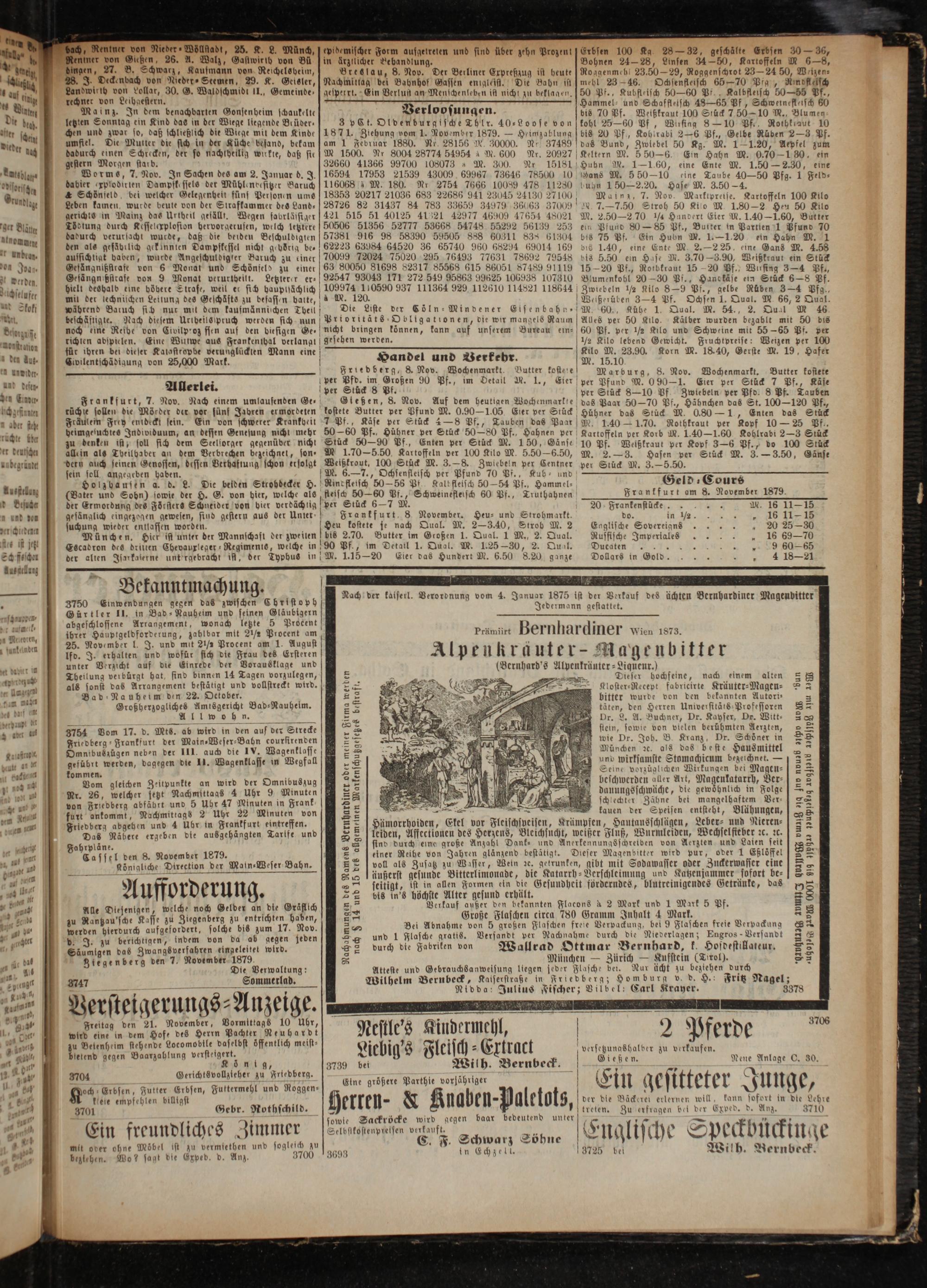 Geld- Cours Frankfurt am 8. November 1879.