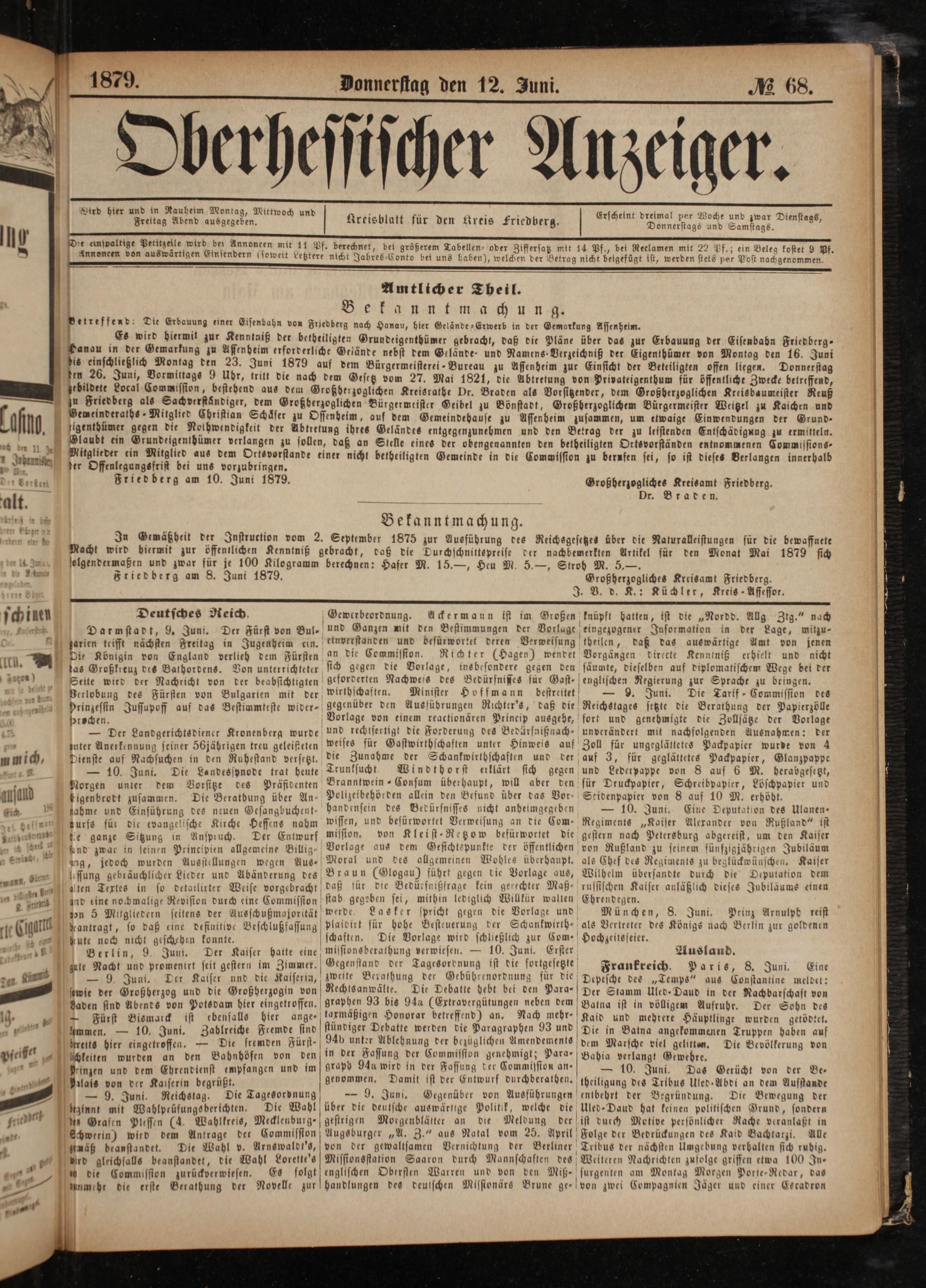 der Offenlegungsfrist bei uns vorzubringen. Friedberg am 10. Juni 1879.