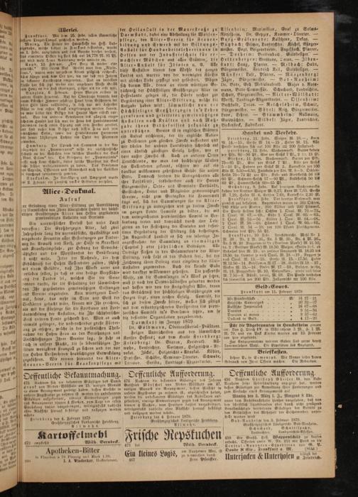 18 1 1 2 2 7 1 12 — lag 115 Su de in 12 beim Erscheinen 51 Begründung einer Alice-Stiftung, welche die Wen rsten Hilse schon vollständig, so daß nur mit äußerster 7 ird: 3 1 7 Nic Rübe in den ersten Stock eingedrungen werden konnte, Aufgabe daben wild: an mtliche 1 13 po man leider den Besitzer des Hauses schon erstickt vor Höchstseligen Großherzogin in's eben und. Von den anderen Bewohnern des gänzlich einge-[gerufenen und geleiteten gemeinnützigen Dee 22 Hau bat sich nur die Frau des Handelsmanns Anstalten nach Kräften und nach Maß whit D.* 5 8 ung aus dem Feuster aeretielesgabe ihres B edürfnisses peku niär zu 4 Jester ind sind außer dem sitzet noch dessen Frau und sein— 5 8 BI 1„wachsener Sohn, sowie der Hondelsmann Hartmann unterstützen. ereits ist in englischen Blättern * su ent seinetr 11jäbrigen Tochter ein Opfer der Flammen ein Aufruf erschienen, der dit englische Nation * 1 8. 5 10 dene worden. 3 2 zu Beisteuern zum gleichen Zwecke auffordert und nitzzn Hamburg. Der Spruch des Seeamtes in der An wir dürsen bei unseren Landsleuten sicherlich auf 40 485 legenheit det„Pommerauia“ mißt die ausschließliche ibnti. n 8 1 Schuld an der Collisien dem fasschen Mandver det Bark einen ähnlich günstigen Ersolg hoffen, N. „Moel Ellian“ dei. Die Besotzung der„Pommetania“ dort außer Zweifel ist. Auch an anderen Orten Fabt. U 54 15 keine Schuld, dieses salsche Manboet der Bark Peutschlands, wo man das hochherzige 2 zalten dicht früber wabrgenommen zu baben. Das Benebmen 9 3. 1 a 150 n late 1 N der ollendeten gekannt, rechnen wit auf ein dann on Caplän, Officieren und Mannschaft nach der Collision 00 ile g 9* 5 beige 0 Ge eee a erzin tei durchaus lodenswerit gewesen. dankbar willkommen geheißenes ehör für unsere Tappn Stockholm. In Norrköping und Umgegend wurde Bitte. Demnach fordern die Unteczeichneten alle dtn gc im 2. Februat ein ziemlich narkes Erdbeben verspürt. ihre Landeleute, insbesondere auch die Herren Scdint 5 Bürgermeister, Orts- und Gemeinde- Vorstände, d. 1 Alice⸗Deukmal. Geistlichen, Leiter und Mitglieder gemeinnütziger . Cn Aufruf Vereine, nicht zum Geringsten die Frauenwelt — e— Gründ 8 Alice⸗Stift ir Unterstünan dazu auf, sich den Sammlungen für udie Alice ur Gründung einer Alice Stiftung zur Unterstützung Sf l F ee aan er sämmtlichen von Ihrer Königlichen Hoheit der hochst⸗ ane a Zwecke U eligen Großherzogin Alice von Hessen gegründeten im ganzen Lande Comités zu bilden, die mit