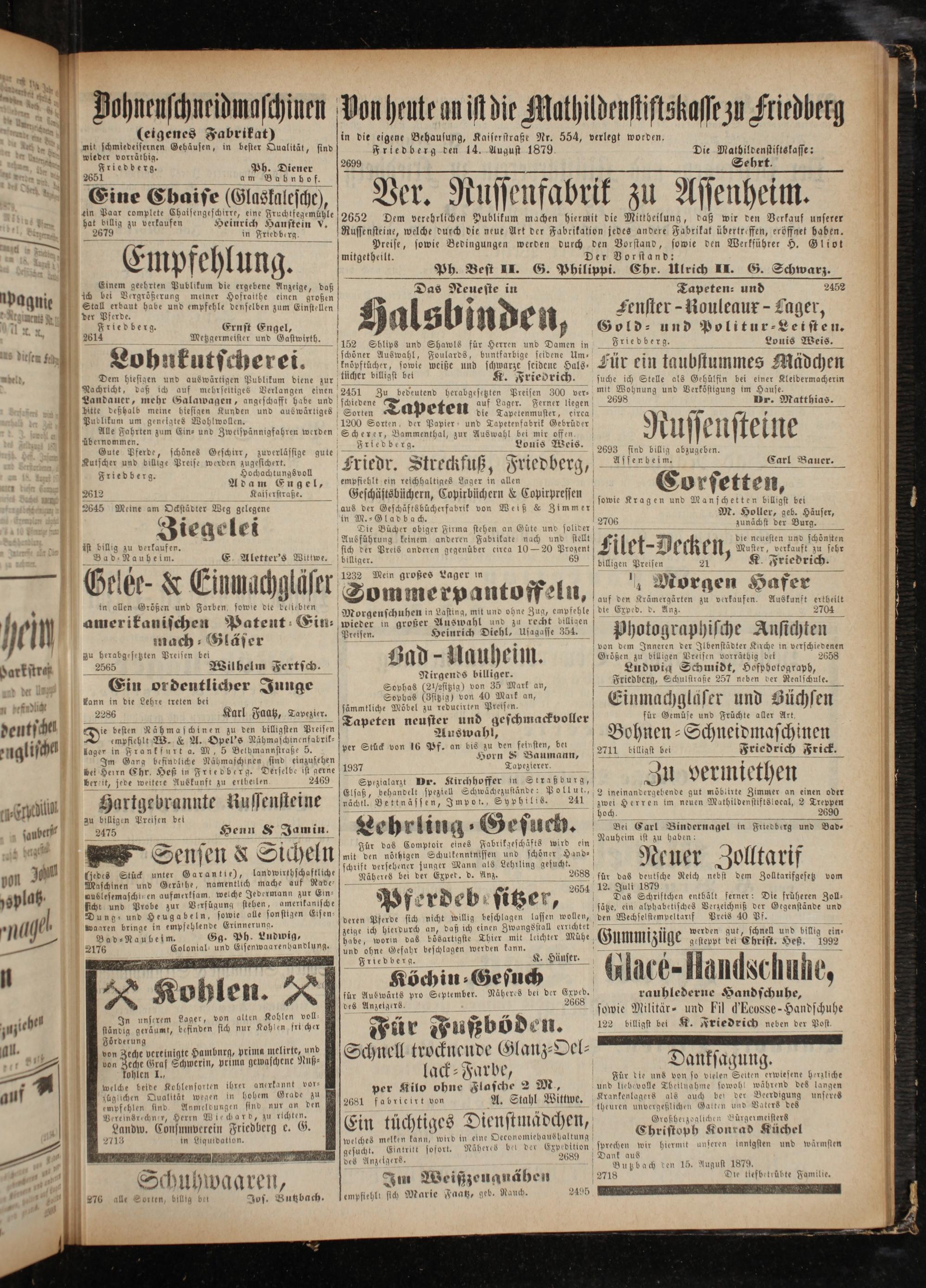 Friedberg den 14. August 1879. Die W