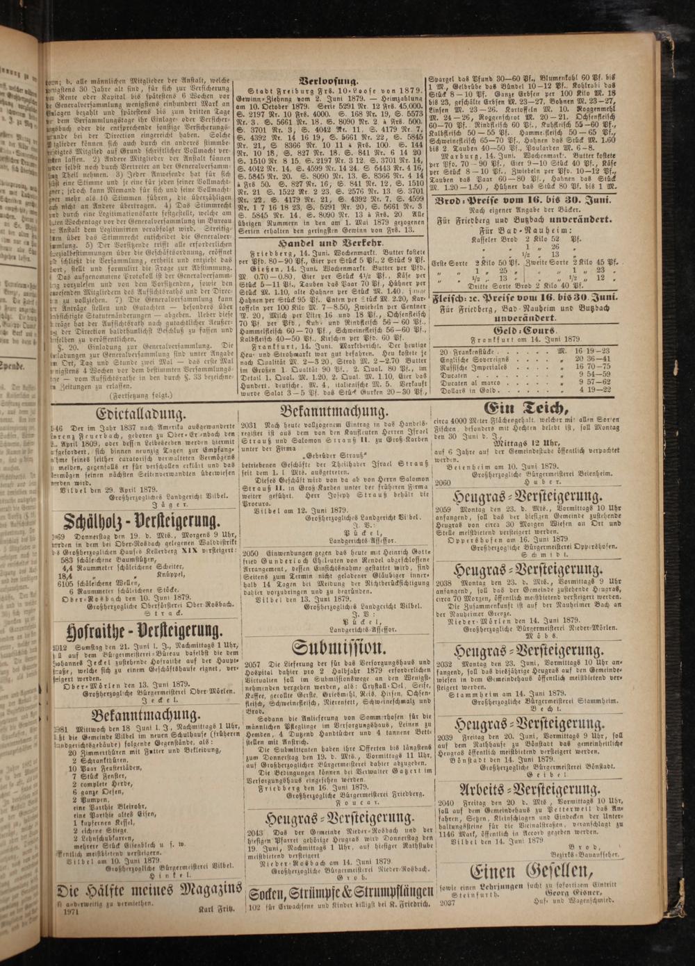 Versorgungshaus eingesehen werden. Friedberg den 16. Juni 1879.
