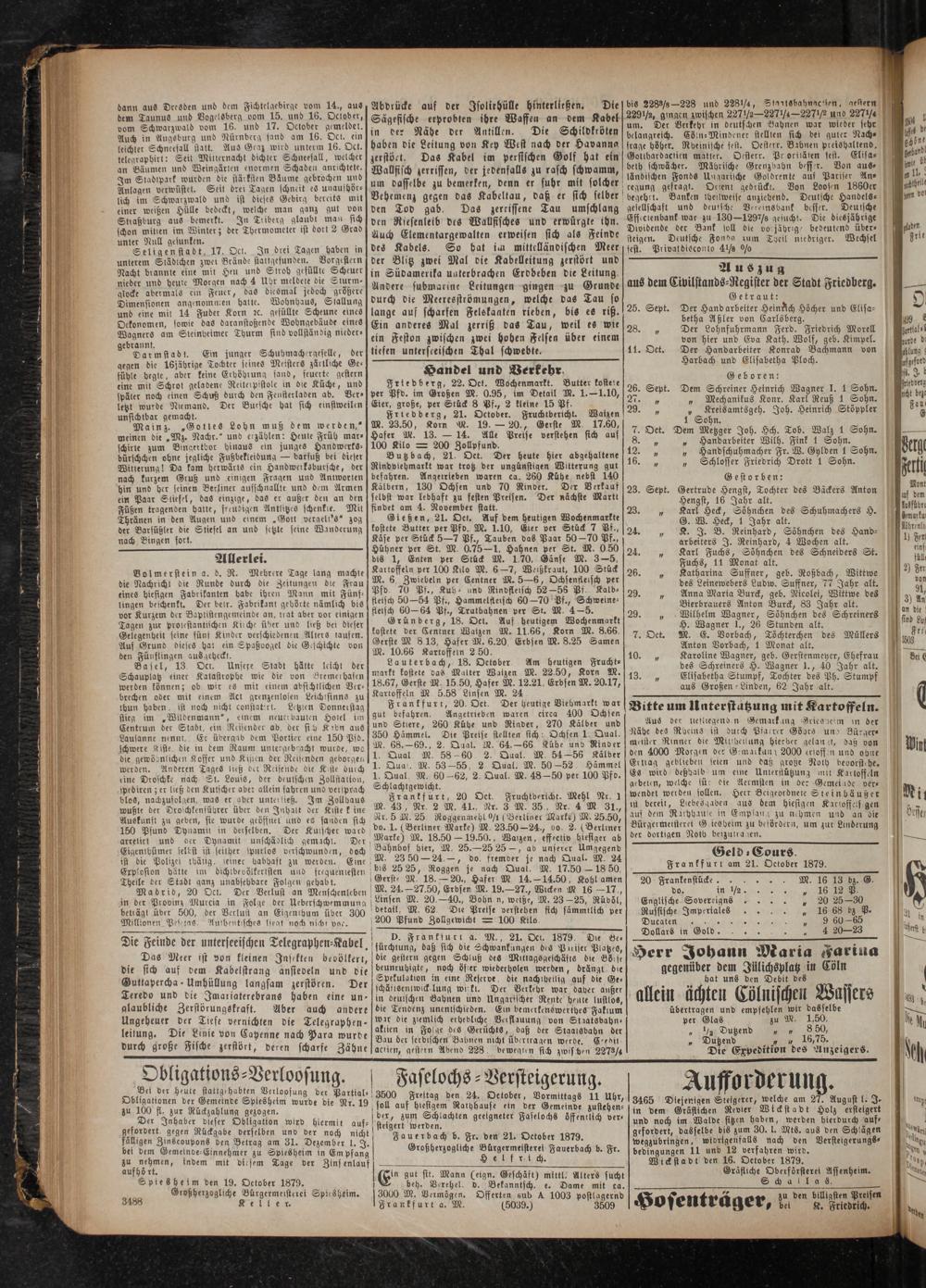 zu nehmen, aufhört. Spiesheim den 19. Oetober 1879. Großherzogliche Bürgermeisterei Spiesheim. 3488„