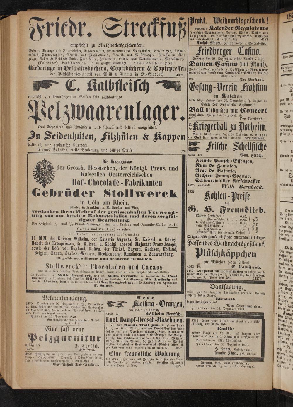 und Stelle versteigert werden. 4162 bei Vilbel am 10. Dezember 1879