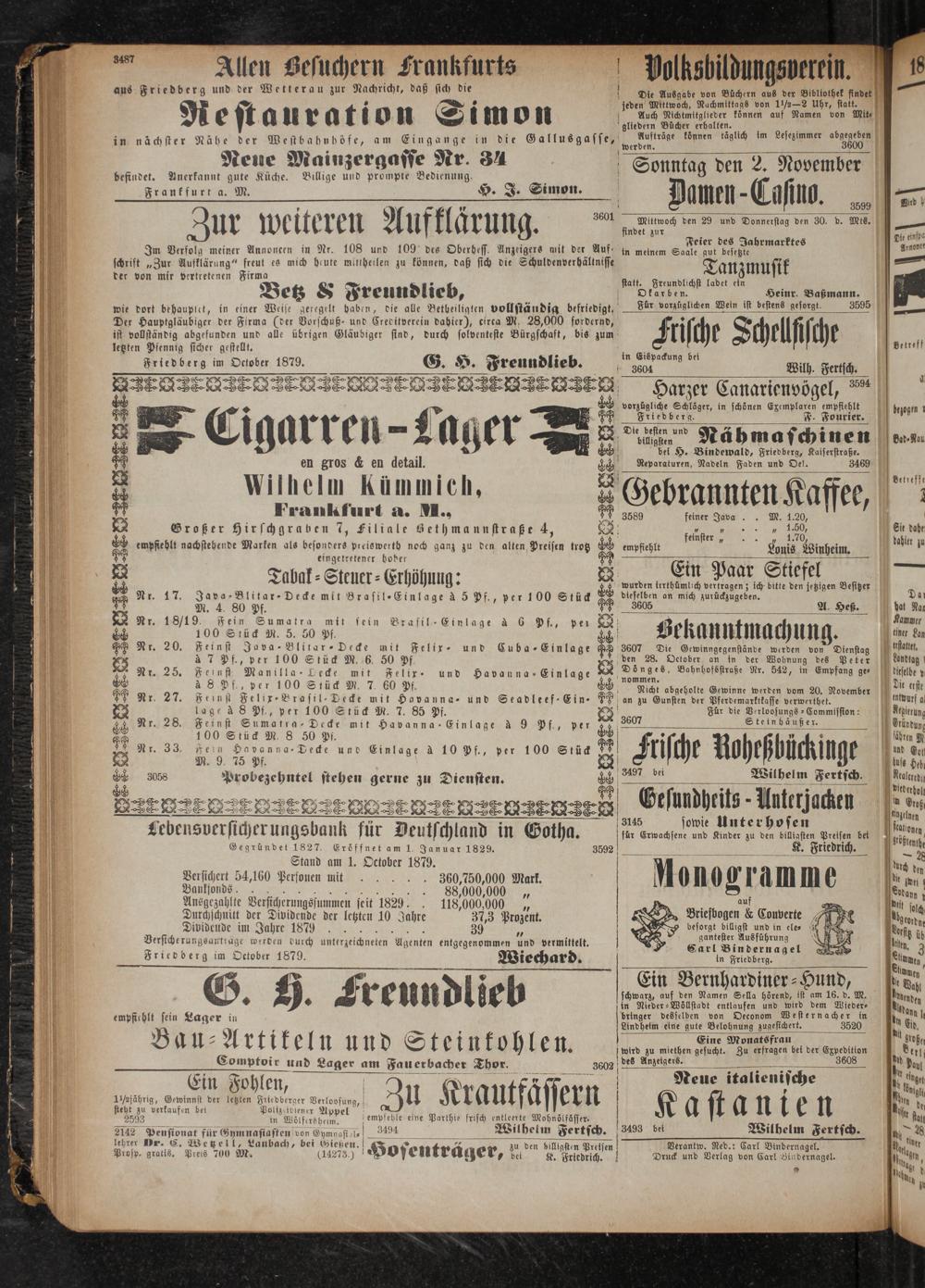 letzten Pfennig sicher gestellt. 2 Friedberg im October 1879. G. H. 42 8782 ee O