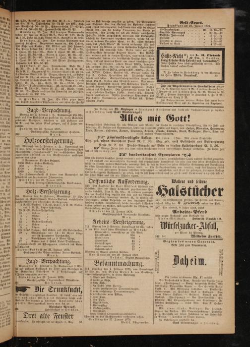 oͤffentlich an den Melstbletenden versteigern lassen. zu Berlin Umschau in fernen Landen. Seulberg den 27. Januar 1879. Zu Bestellungen empfiehlt sich Wolff, Buürgermeister, Carl Bindernagel g.