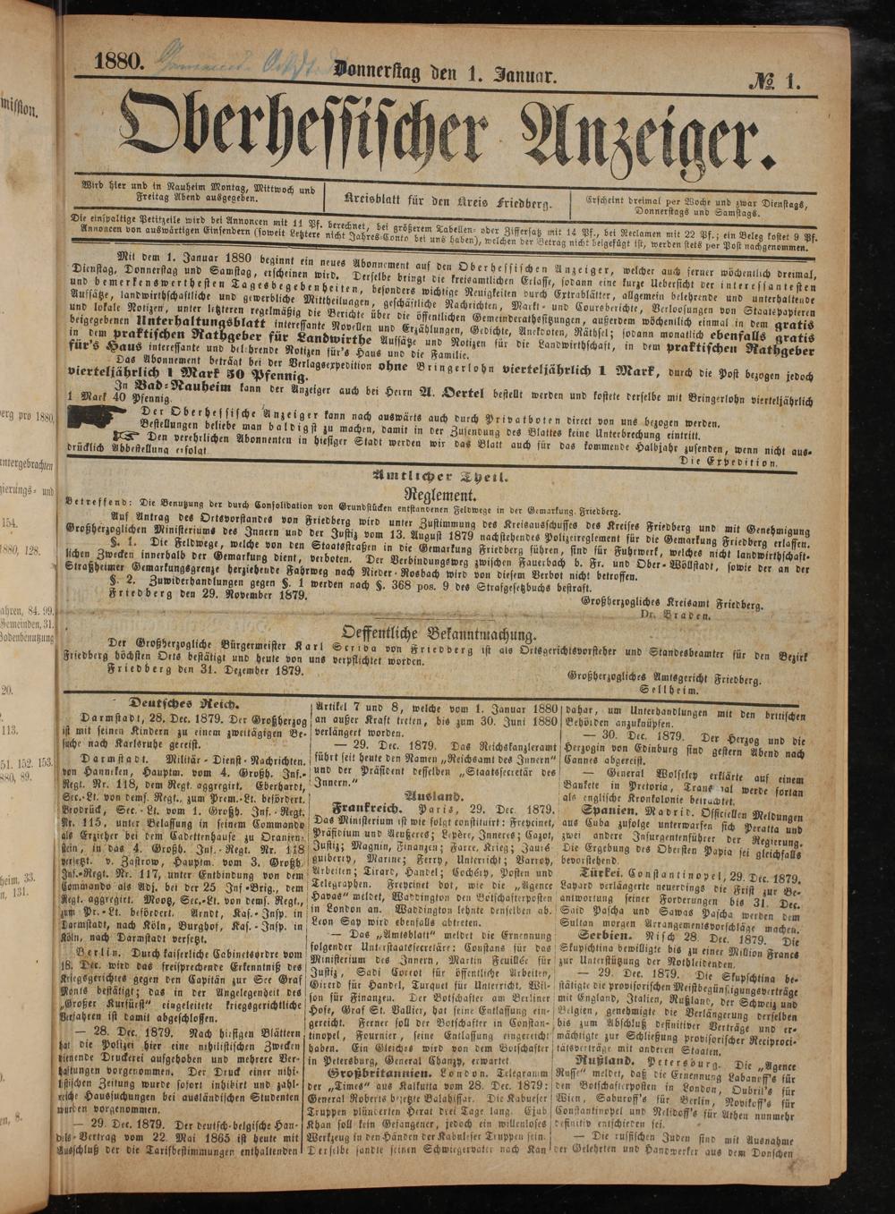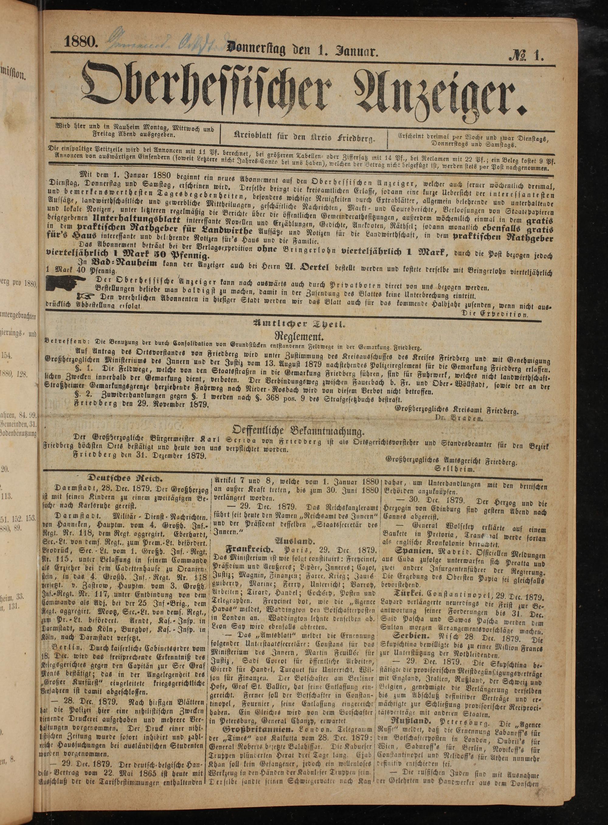 Mit dem 1. Januar 1880 be Dienstag, Donnerstag und Samstag, e und bemerkenswerthesten Tagesbe Aufsätze, landwirthschaftliche und gewerbli und lokale Notizen, unter le beigegebenen Unterhaltun in dem praktischen Rat