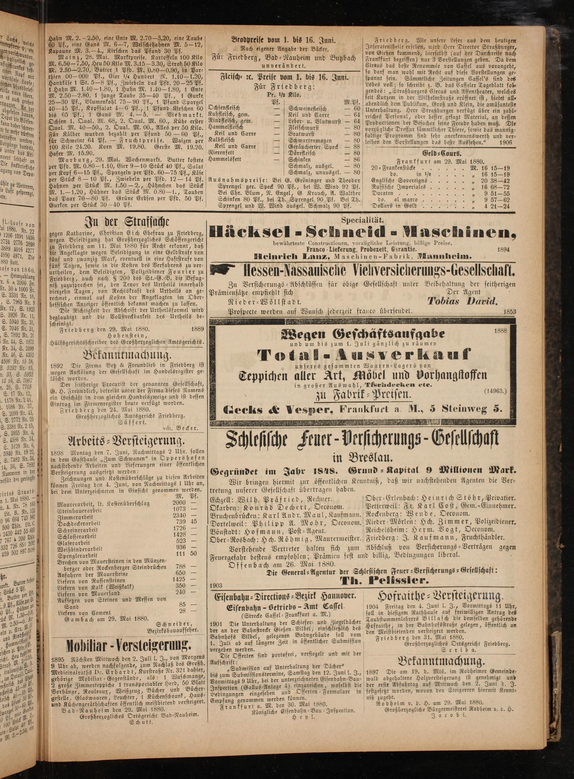 Friedberg den 29. Mai 1880. Hohenstein, des Großherzoglichen Amtsgerichts.