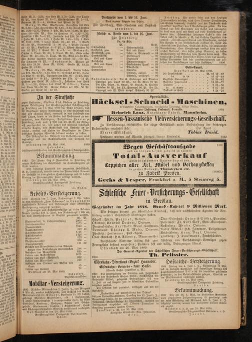 Ober-Erlenbach: Heinrich Stöhr, Privatier. Petterweil: Fr. Karl Cost, Gem.-Einnehmer. Rockenberg: Wende, Oeconom. Nieder-Mörlen: Hch. Zimmer, Polizeidiener. Reichelsheim: Herm. Vogt, Oeconom. Ober⸗Rosbach: Hch. Röhmig, Maurermeister. Friedberg: J. Kaufmann, Fruchthändler. Vorstehende Vertreter halten sich zum Abschluß von Versicherungs⸗Verträgen gege Feuergefahr bestens empfohlen; Prämien fest und billig, Bedingungen liberal. 5 Offenbach am 26. Mai 1880. 2 Die General-Agentur der Schlesischen Feuer ⸗Versicherungs-Gesellschaft: Th. Pelissier.