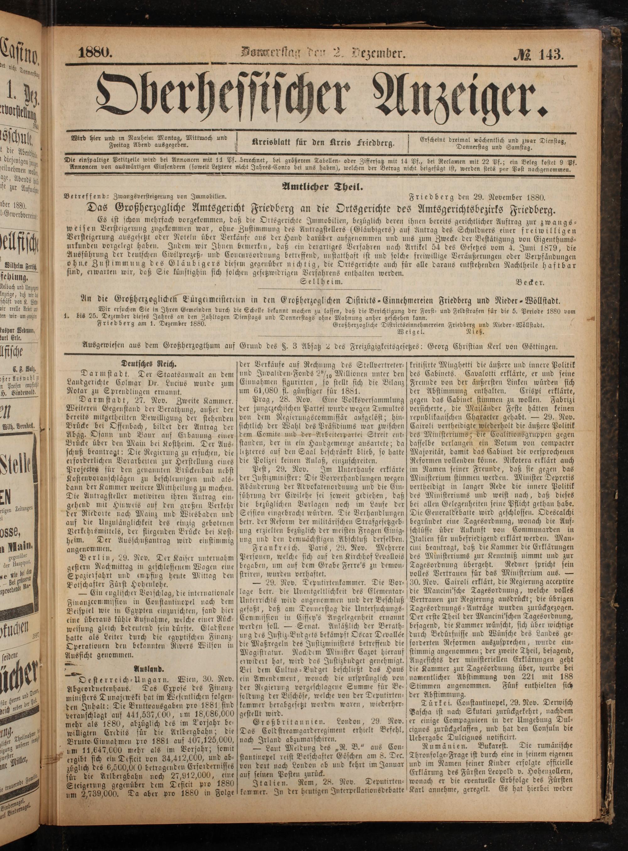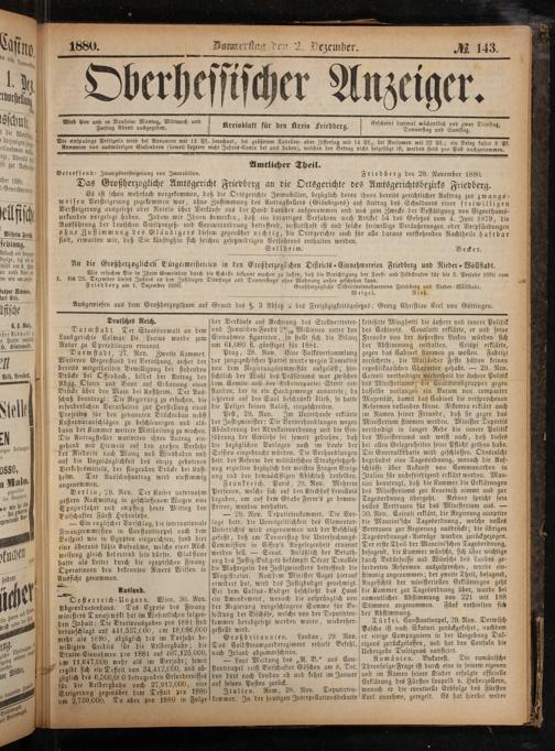 3 5 Wir ersuchen Sie in Ihren Gemeinden durch die Schelle bekannt machen zu lassen, daß die Berichtigung der Forst- und Feldstrafen für die 5. Periode 1880 vom 1. bis 25. Dezember dieses Jahres an den Zahltagen Dienstags und Donnerstags ohne Mahnung anher geschehen kann. Großherzogliche Distrietseinnehmereien Friedberg und Nieder-Wöllstadt.