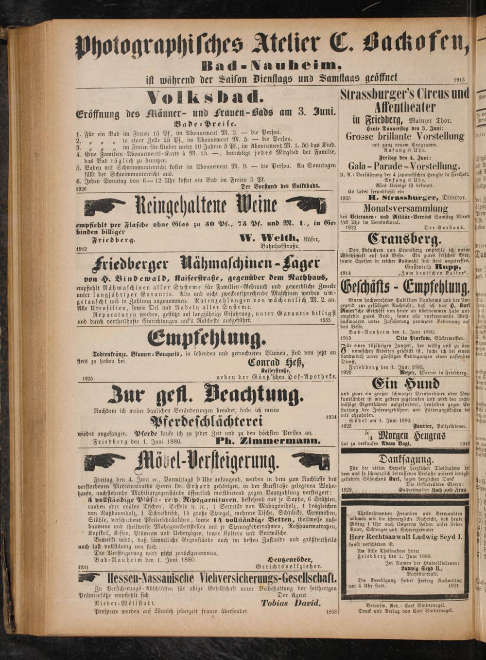 Friedberg den 1. Juni 1880.