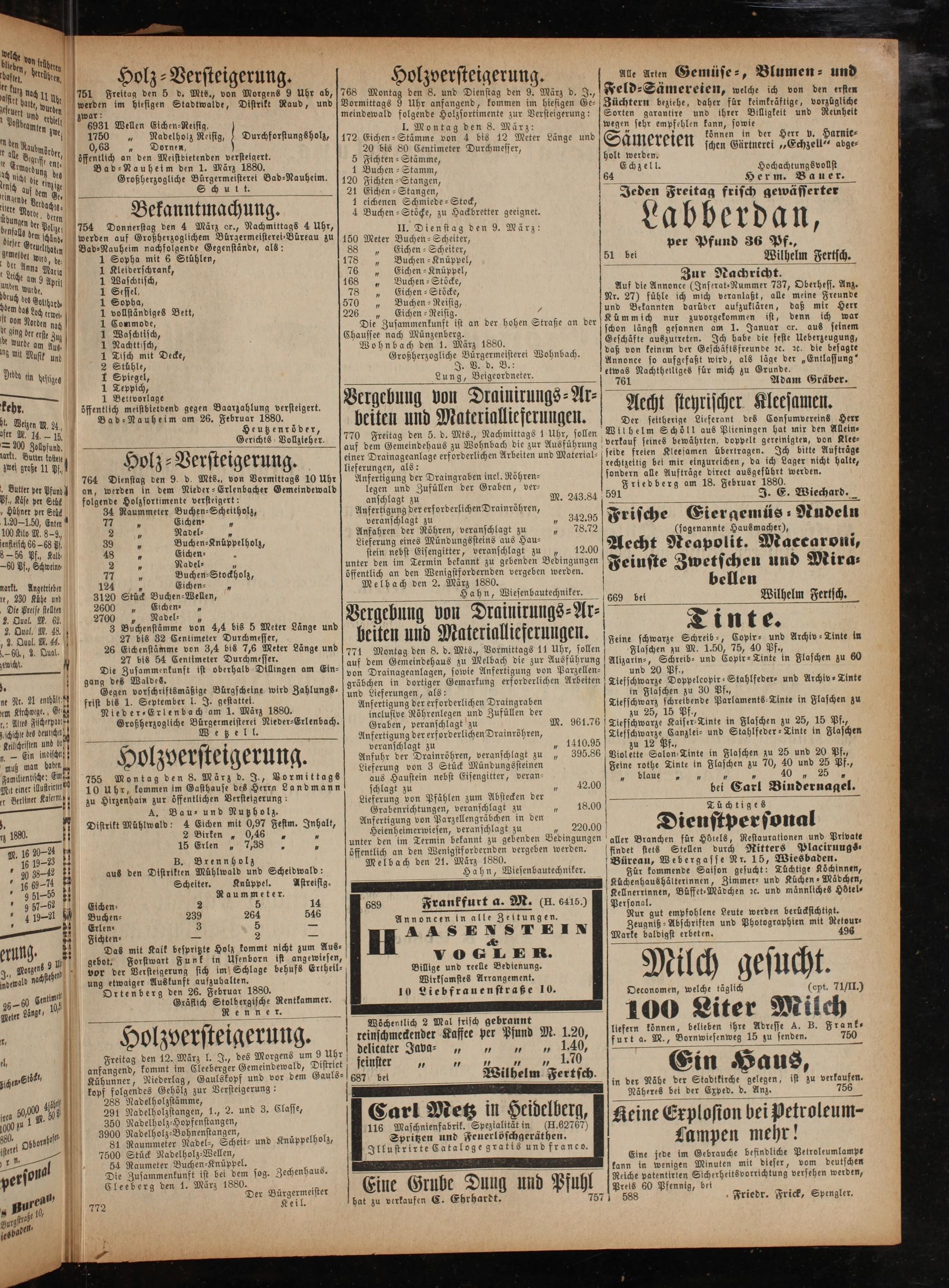 Bad⸗ Nauheim den 1. März 1880. Großherzogliche Bürgermeisterei Bad-Nauheim. Schutt.