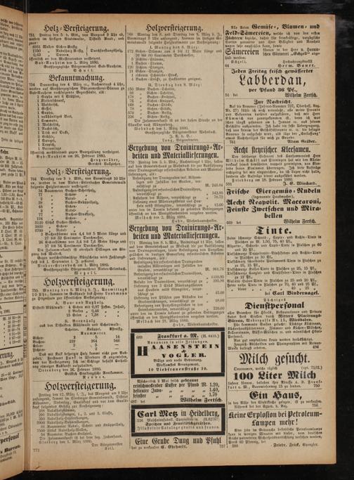 24 15 Erlen„ 7,38* unter den im Termin bekannt zu gebenden Bedingungen aller Branchen für Hotels, Restaurationen und Private 1. 10 7 10 öffentlich an den Wenigstfordernden vergeben werden. findet stets Stellen durch Ritters Placirungs⸗ „ 18 1 77 B. Prenntßolz Melbach den 21. März 1880. Büreau, Webergasse Nr. 15, Wiesbaden. „ 20 38—4 40 aus den Distrikten Mühlwald und Scheidwald: Hahn, Wiesenbautechniker. Für kommende Saison gesucht: Tüchtige Köchinnen, 1 40 119 10. urpe. Astreisig. 2 2 i Küchenhaushälterinnen, Zimmer- und Küchen⸗ Mädchen, „ en r Kellnerrinnen, Büffet⸗Mädchen ꝛc. und männliches Hötel⸗ „9- J Leichen. 2 5 14 Frankfurt a. M.(H. 6415.) Personal. 5 419—21 10 8 225 5 546 Annoncen falle Zeitungen. Nur gut empfohlene Leute werden a Erlen⸗ 77 Zeugniß⸗Abschriften und Photographien mit etour⸗ — Dian.. AAS NST EIN beg e. 480 Das mit Kalk bespritzte Holz kommt nicht zum Aus⸗ 77777. ĩò[v.
