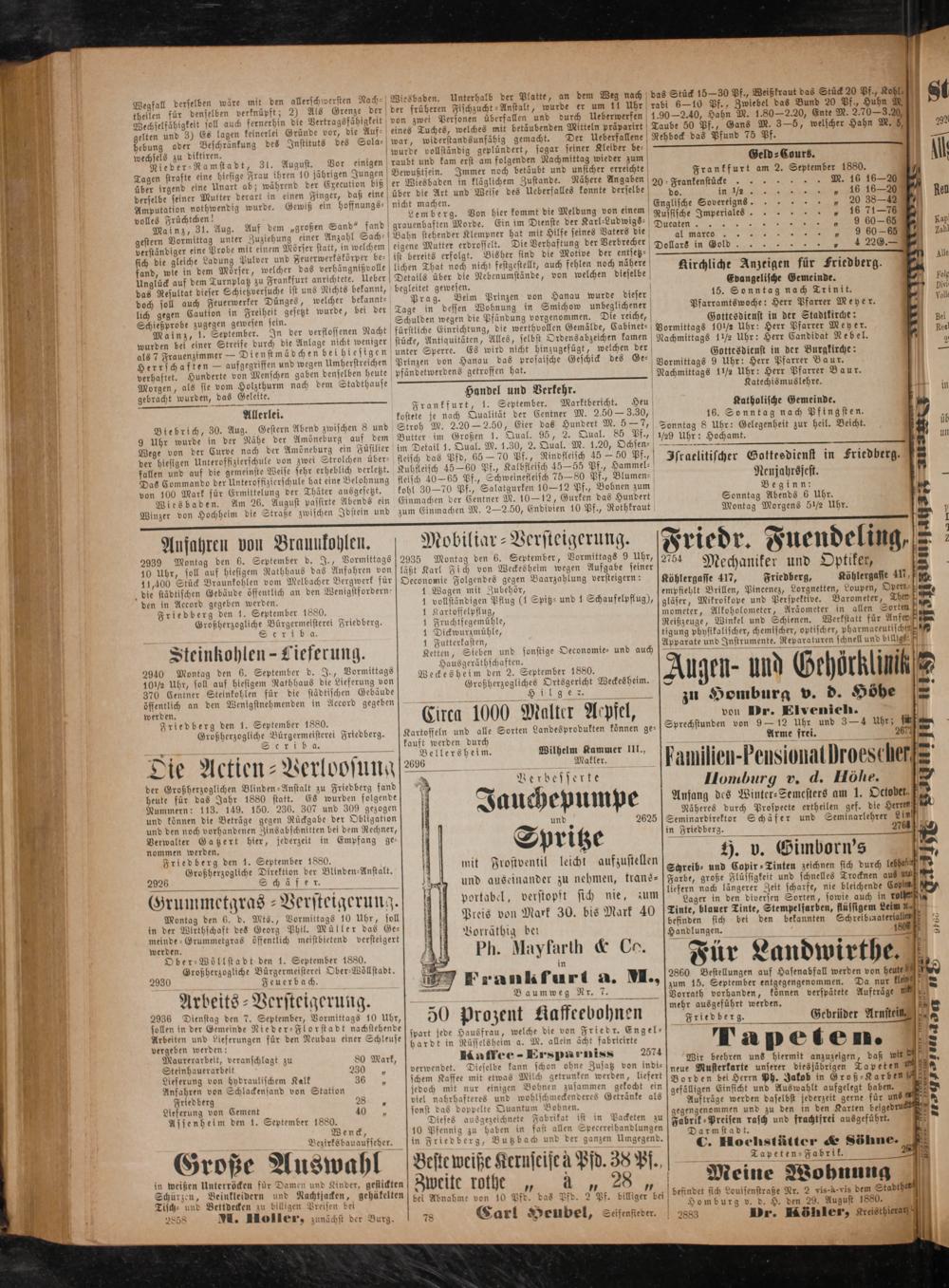den in Accord gegeben werden. Friedberg den 1. September 1880. Großherzogliche Bürgermeisterei Friedberg. Sertiba.