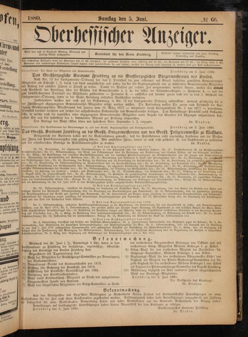 0 0„ 8 alskelung Betreffend: Die Wahl der Mitglieder des Gemeinderaths. Friedberg am 3. Juni 1880.