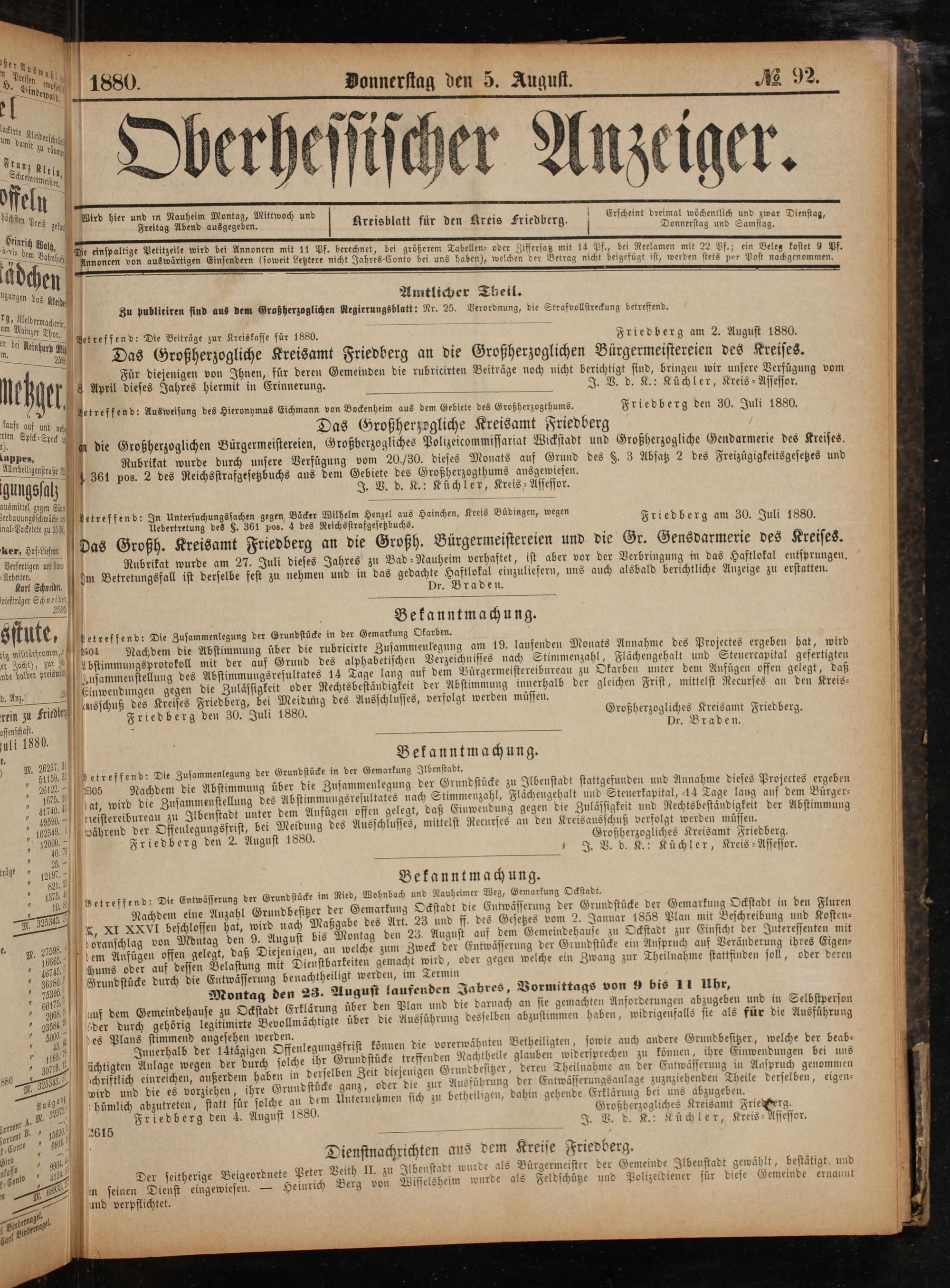 N 710 zusschuß des Kreises Friedberg, bei Meidung des Ausschlusses, verfolgt werden müssen. rein zu Frit 9 1 Friedberg den 30. Juli 1880.