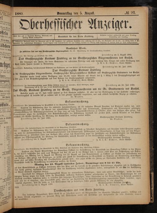 Großherzogliches Kreisamt Friedberg. Dr. Braden.
