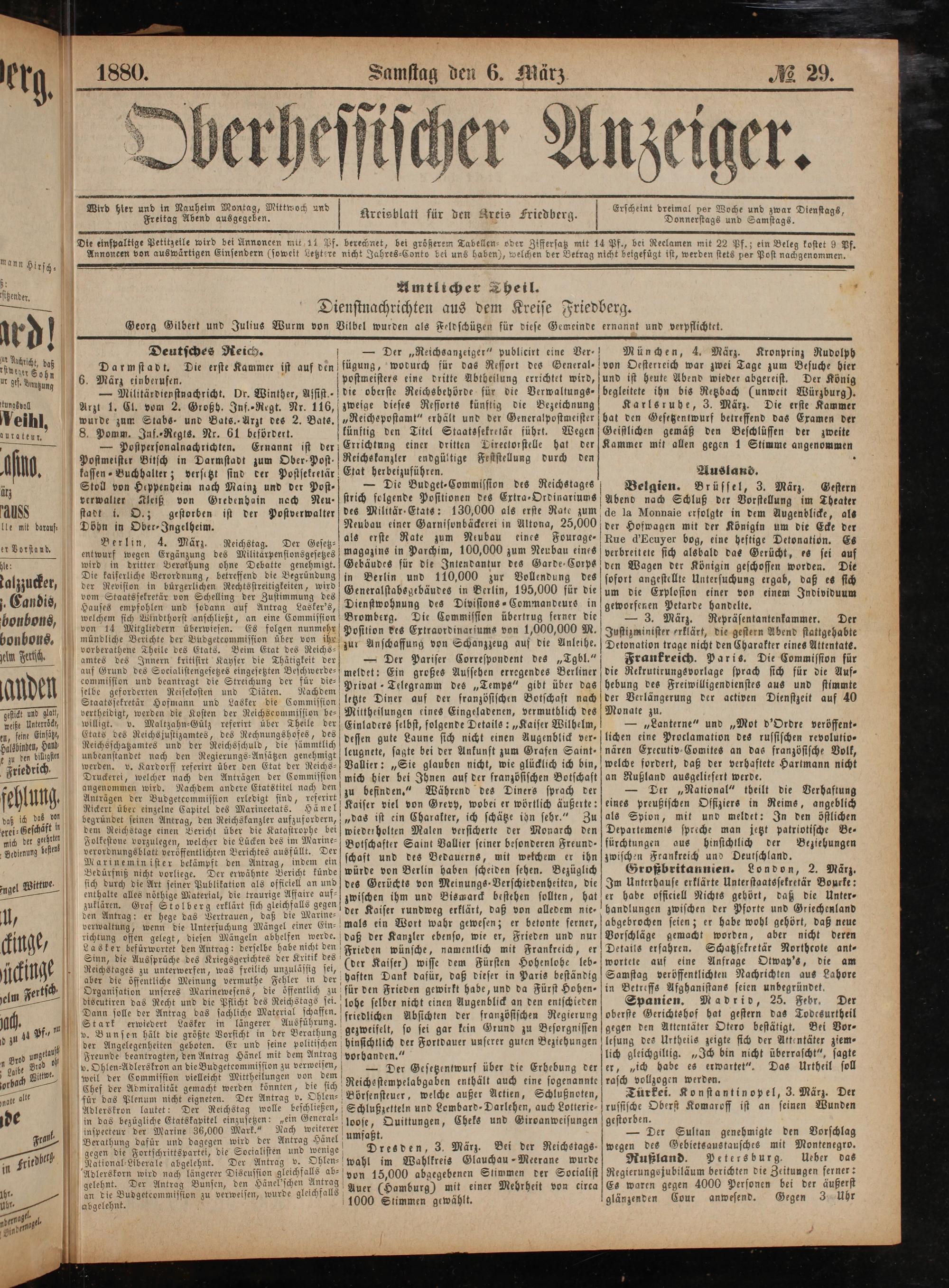 Areisblatt für den Kreis Friedberg.